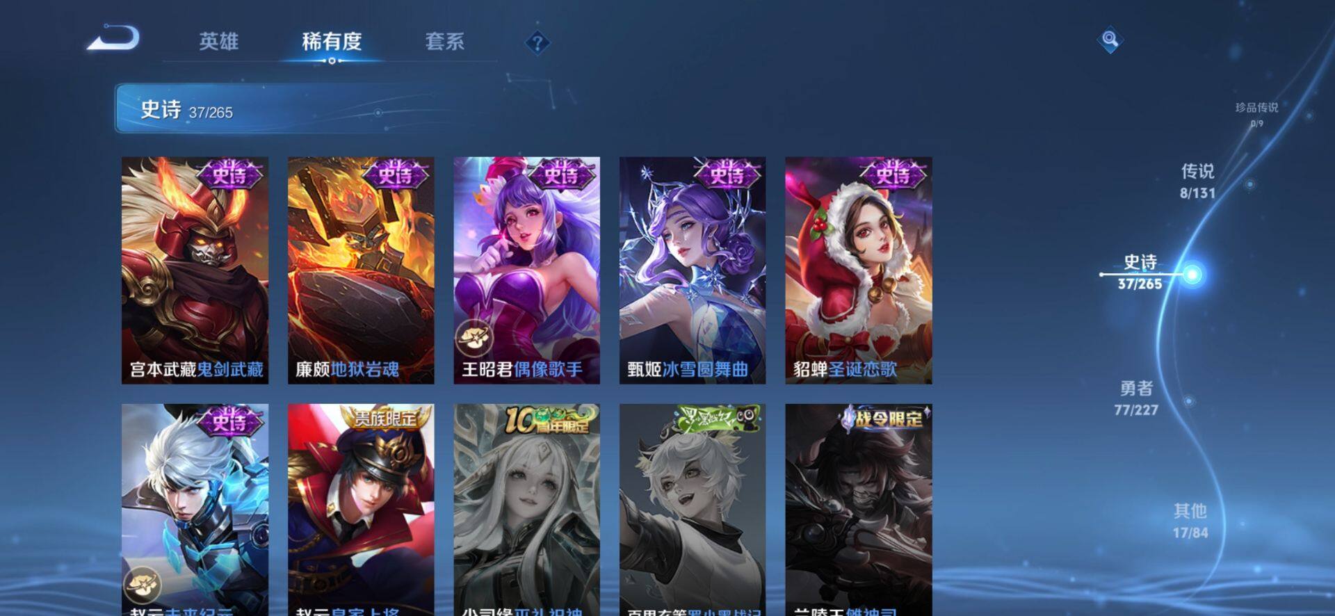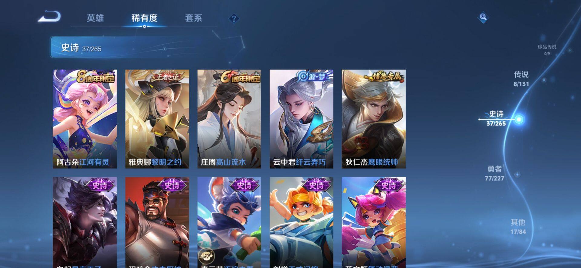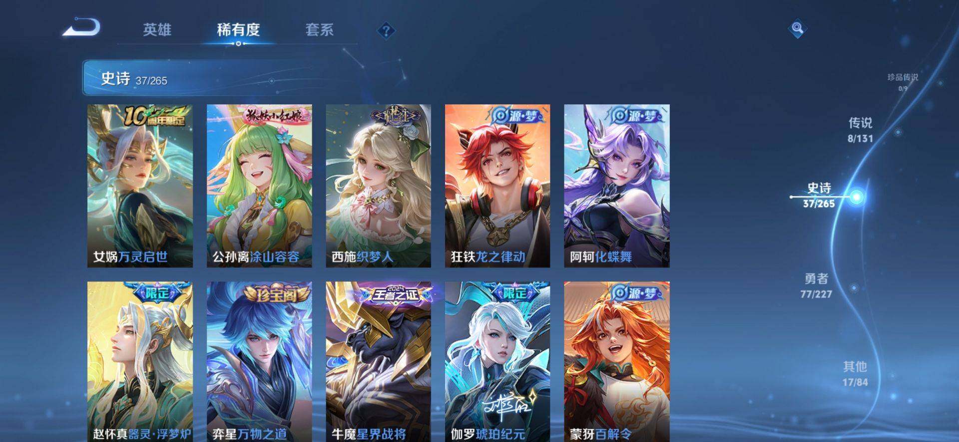 【限定皮肤】:铠冥王哈迪斯,姜子牙天穹之誓,狄仁杰阴阳师,赵云皇家上将,庄周高山流水,高渐离玩趣恶龙,