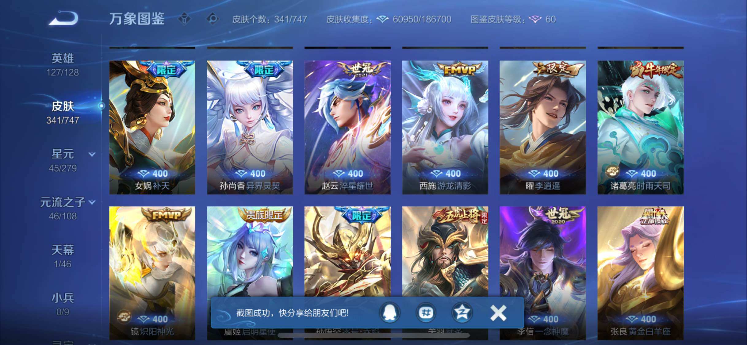 【精品v9·4典藏·1无双·2珍品·器灵螭龙剑·九霄神辉·怪盗基德·炽翼辉光·山海琳琅生·山海苍雷引·山海炽霜斩·深海之息·补天·异界灵契·李逍遥·武圣·时雨天司·白虎志·飞衡·可二次】YXw9414-苹果Q-127英雄-341皮肤-7王者印记-270铭文-贵族积分15w【贵族9】【4典藏·1无双·2珍品·2星传说·40传说·1天幕·12按键·202幸运值】【因赛季