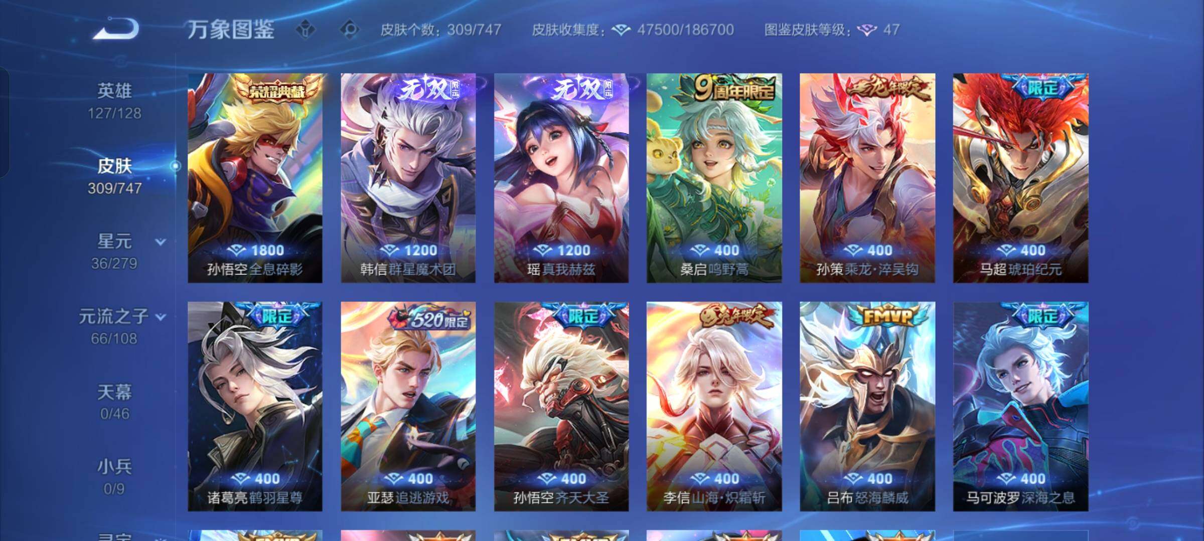 【店长推荐·全皮猴子·全息碎影·瑶真我赫兹·韩信群星魔术团·乘龙淬吴钩·马超琥珀纪元·鹤羽星尊·山海炽霜斩·怒海麟威·深海之息·马超无双飞将·乞巧织情·游龙清影·曜云鹰飞将·太华·可二次】YXw9040-安卓Q-127英雄-309皮肤-11王者印记-170铭文-贵族积分9w【贵族8】【1典藏·2无双·2星传说·24传说·12按键·204幸运值】【因赛季更新游戏段付