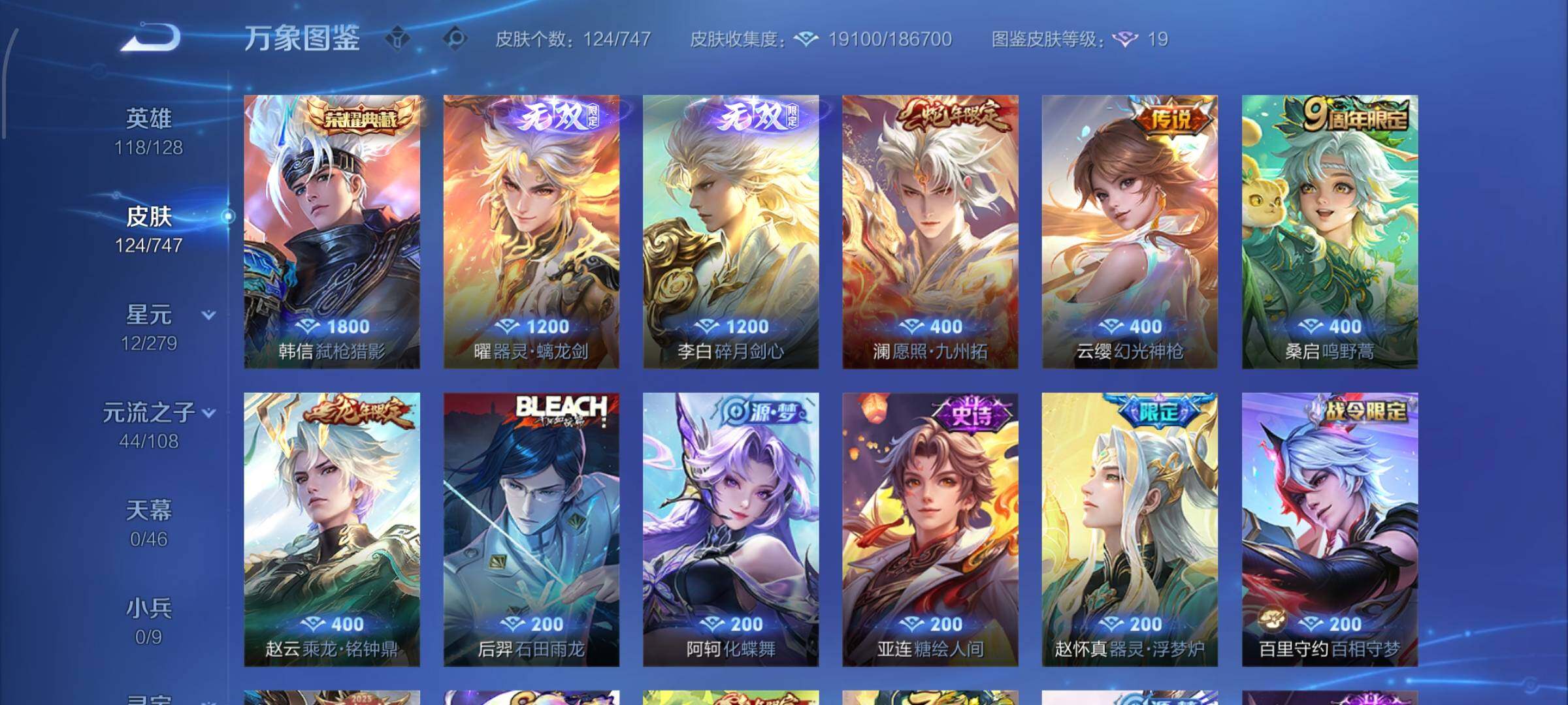 【精品小号·弑枪猎影·碎月剑心·器灵螭龙剑·愿照九州拓·乘龙铭钟鼎·山海玄木吟·可二次】YXw9477-安卓Q-118英雄-124皮肤-5王者印记-120铭文-贵族积分1w【贵族6】【1典藏·2无双·4传说·6按键】【因赛季更新游戏段付以上号为准!】
