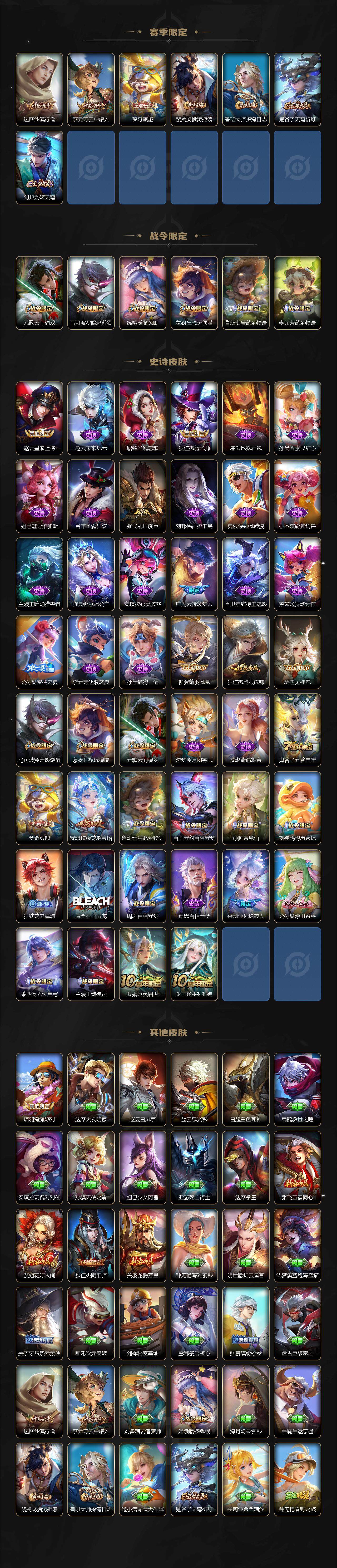 皮肤178 英雄126 荣耀王者 荣耀典藏1 珍品无双1 无双皮肤4 珍品传说7 传说26 其他皮肤49-皮肤178 英雄126