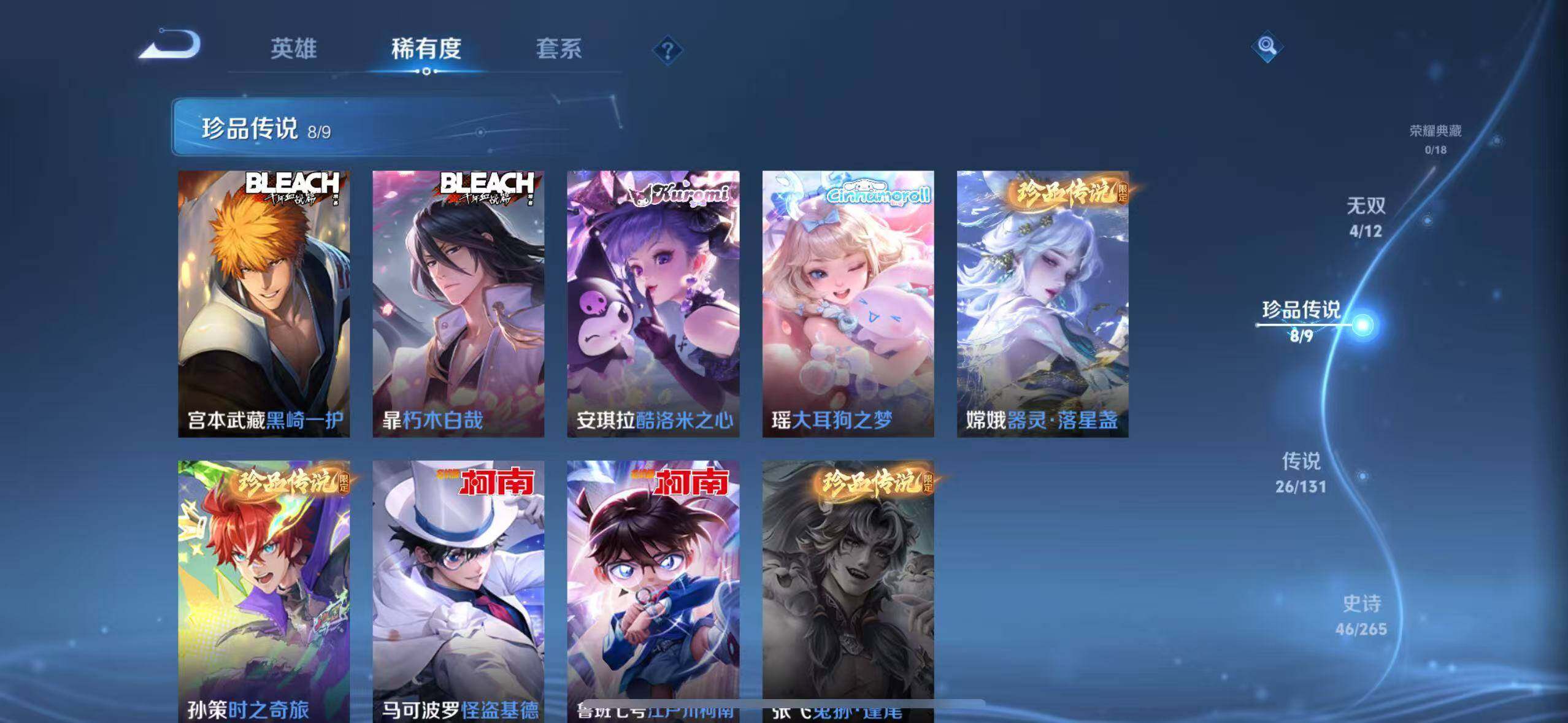 iOS/馥梦繁花/V9-1典藏1珍品无双4无双8珍品传说26传说/武则天+幻海之心/瑶真我赫兹/碎月剑心/天机白泽/神罪/怪盗基德/江户川柯南/时之奇旅/器灵落星盏/瑶大耳狗之梦/安琪拉酷洛米之心/朽木白哉/黑崎一护