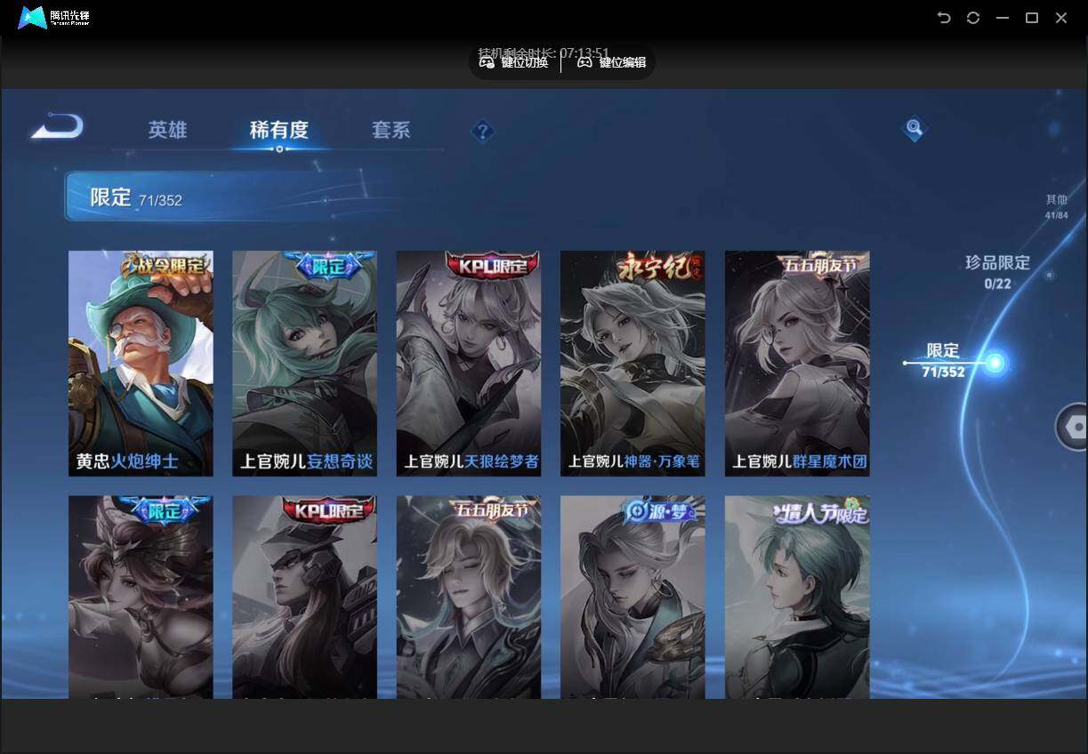 【W4471】【亮点:打野36段-对抗30段-银白咏叹调】 热门:逐花归海,愿照九州拓,神威】安卓q-有二次-贵7-125英雄-225皮肤-1典藏-1星元-10传说-71限定-8按键-贵族积分2w