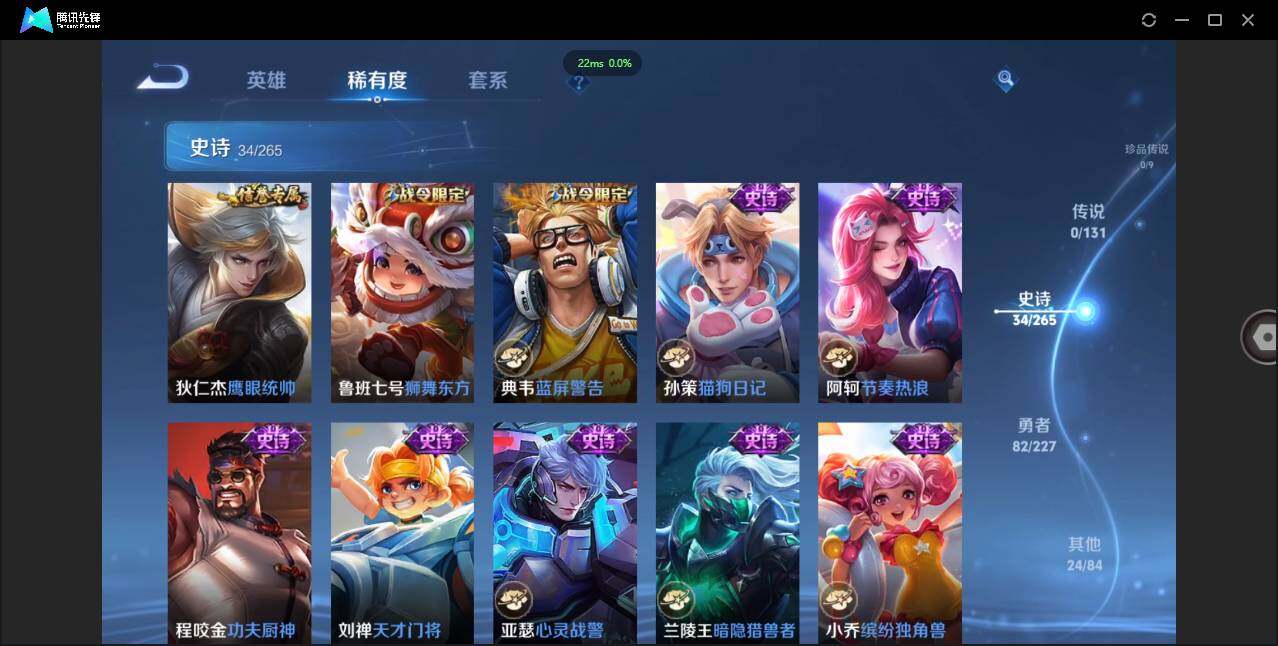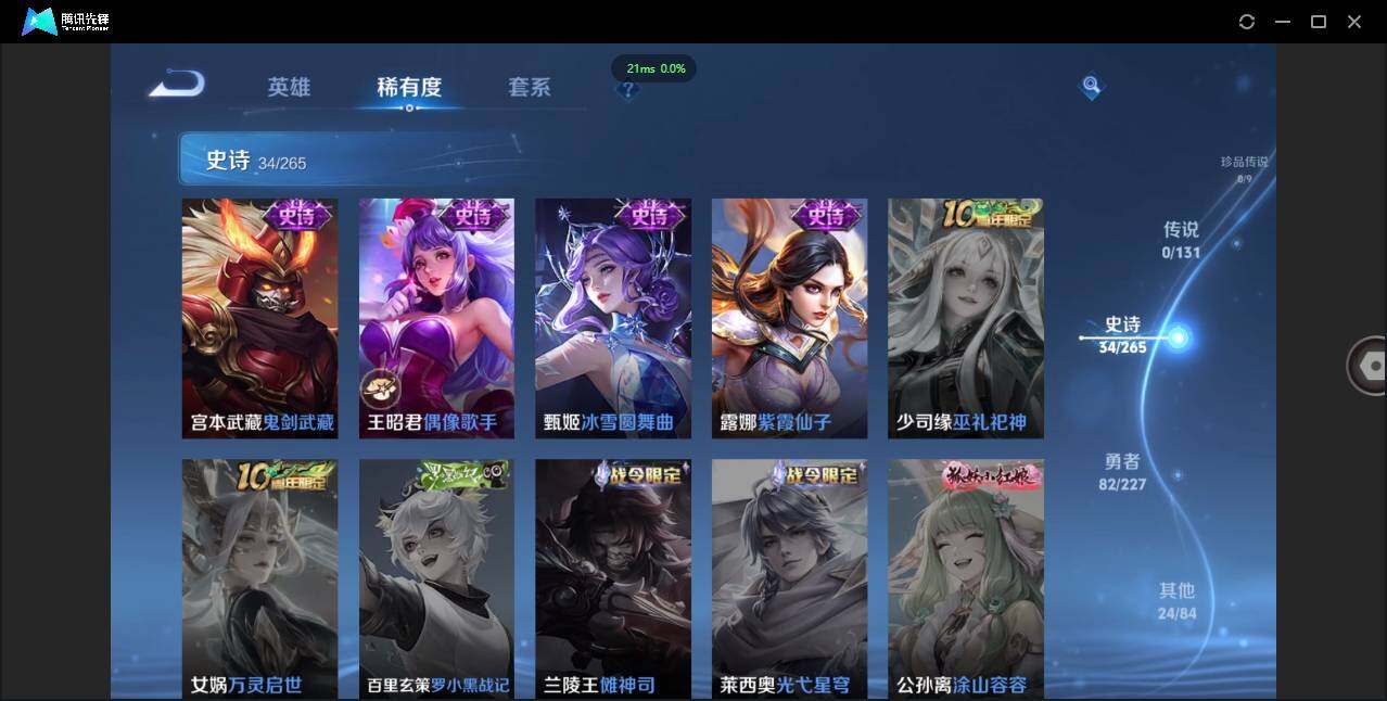 皮肤140 英雄125 至尊星耀 其他皮肤58-
