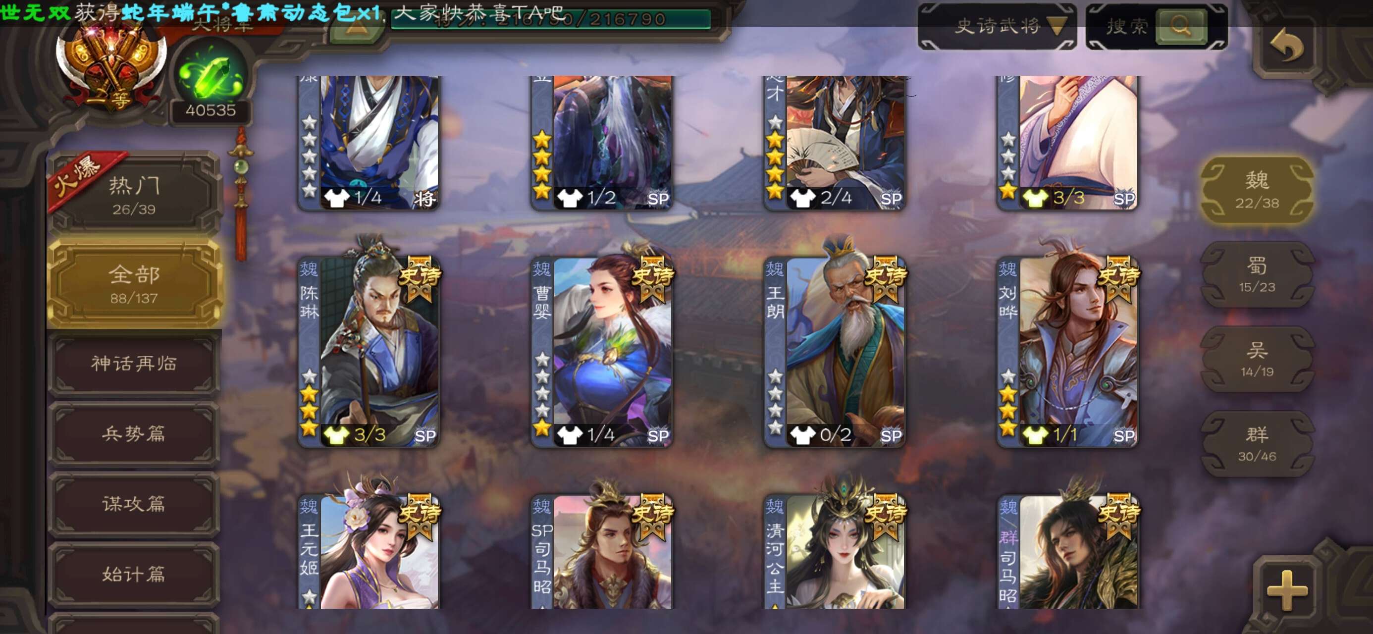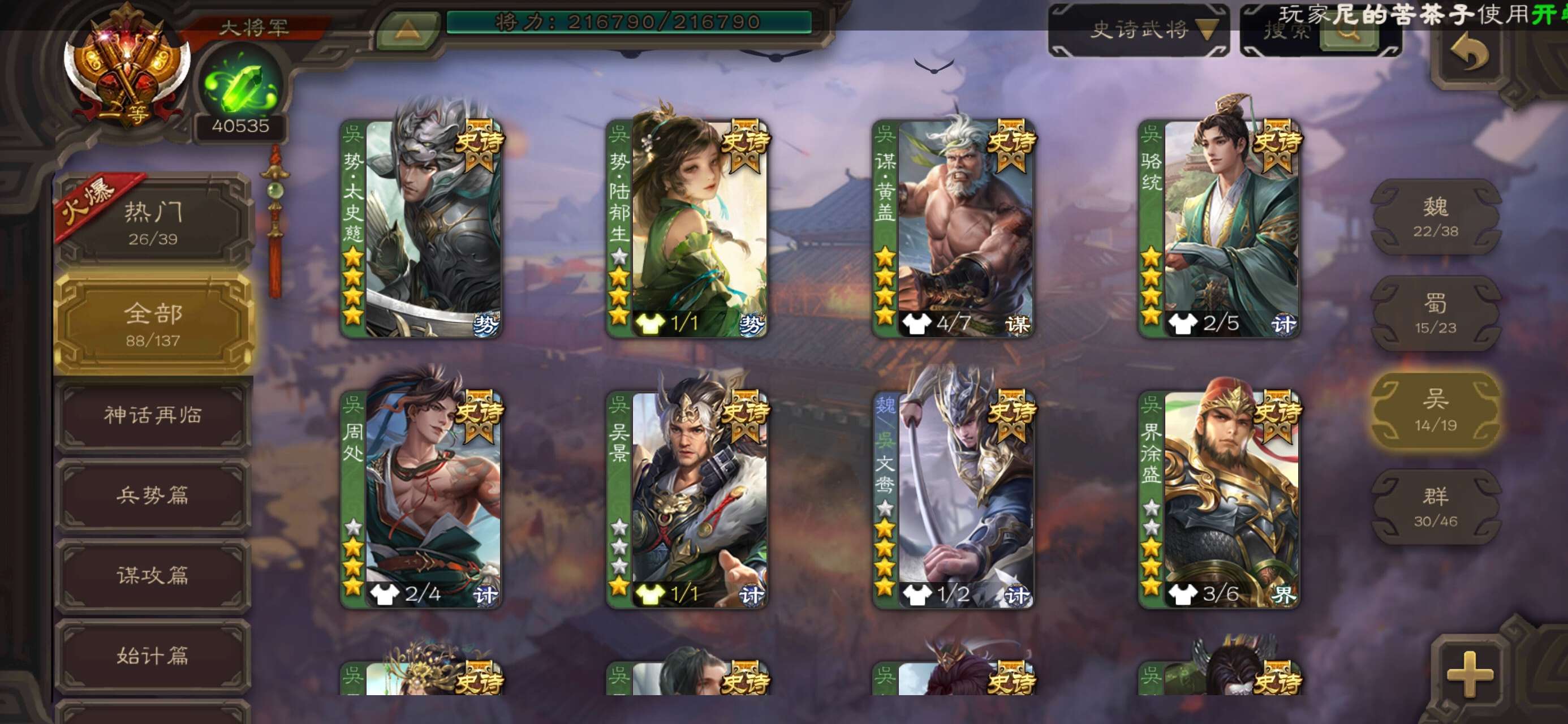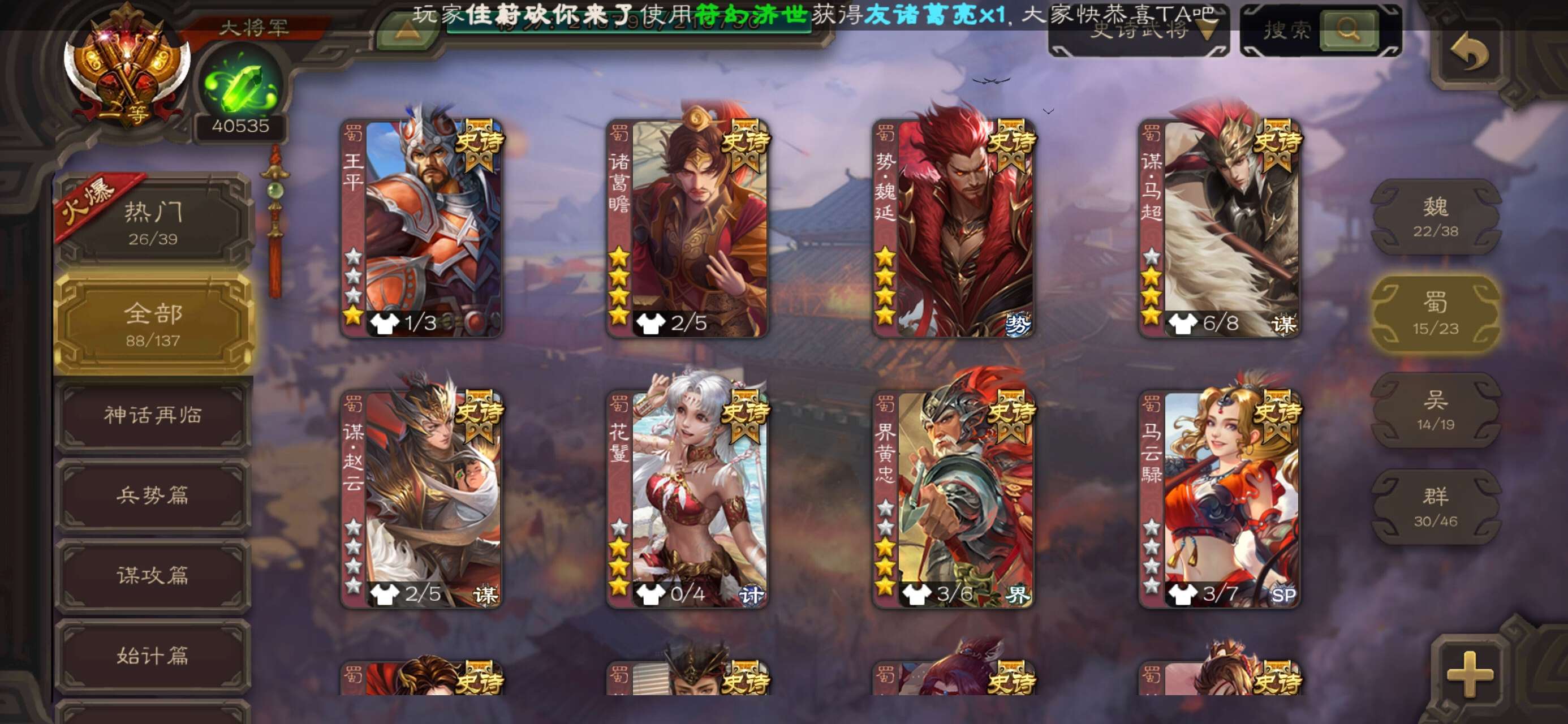 史诗武将数量: