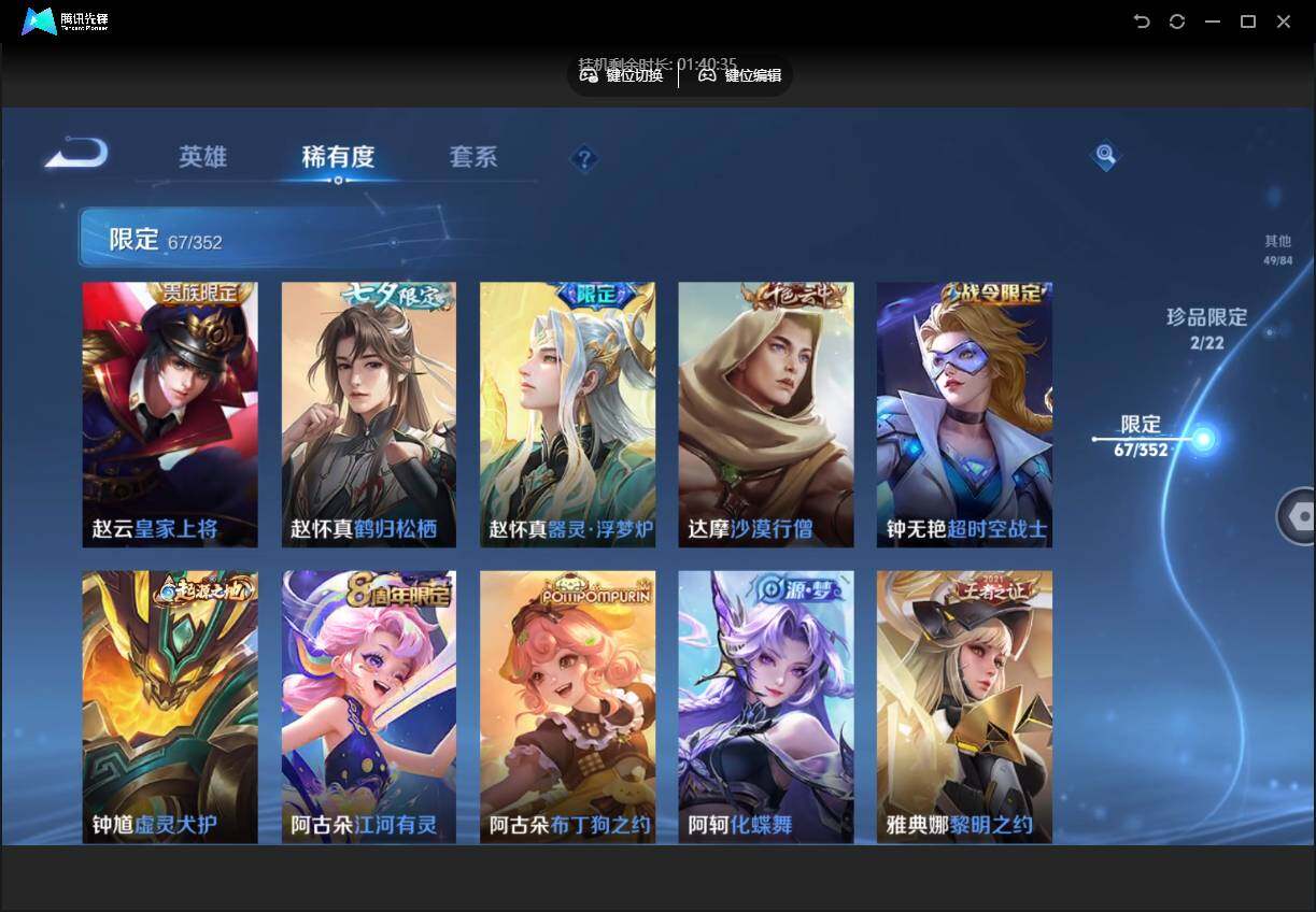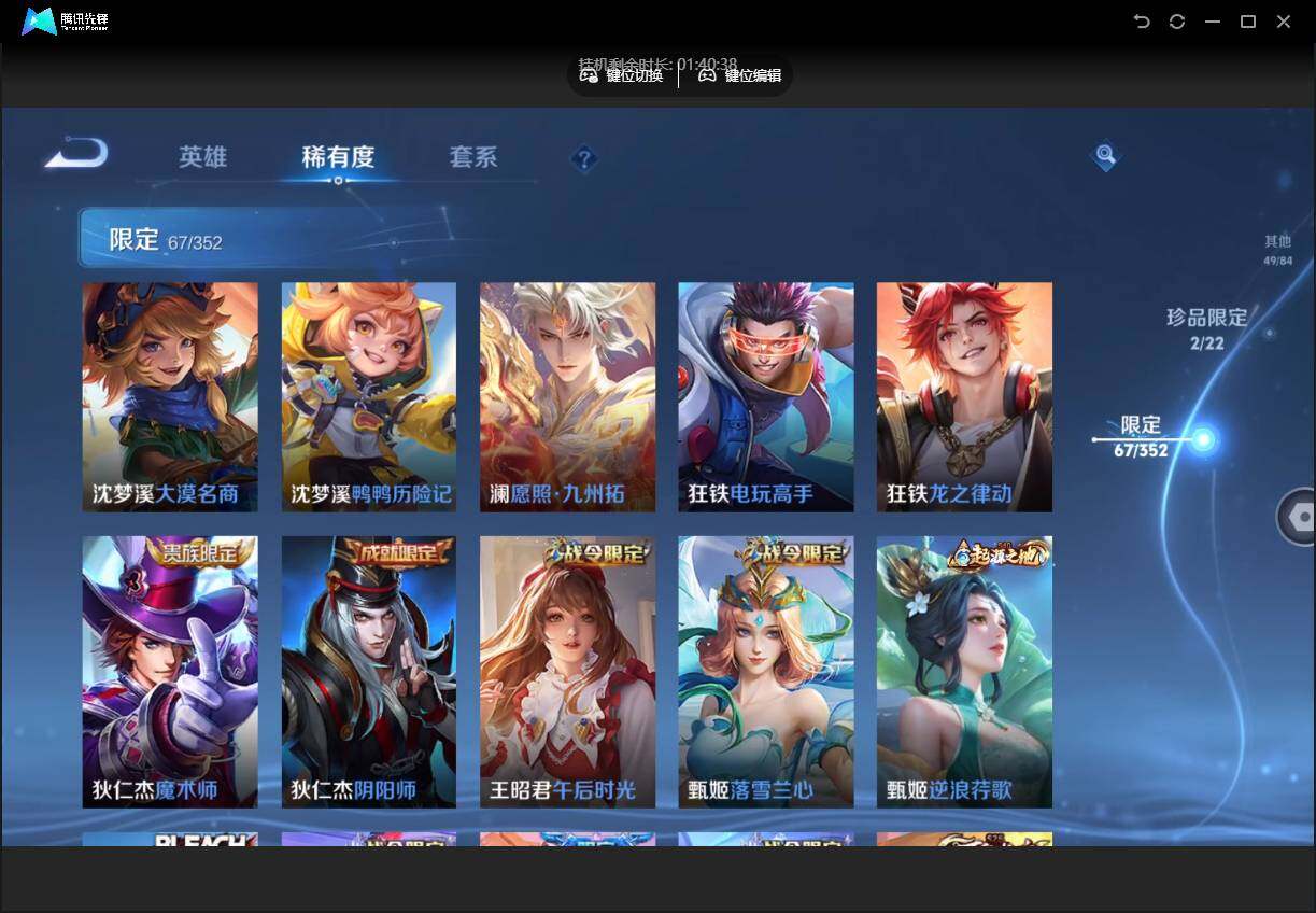 【W4488】【亮点:6.2k场次-对抗27段-九霄神辉-江户川柯南-怪盗基德】 【热门:愿照九州拓 山海炽霜斩 浮生妄 挚爱之约 霜月吟】安卓q-无二次-贵7-125英雄-226皮肤-1典藏-2珍品-10传说-67限定-18按键-贵族积分3.9w