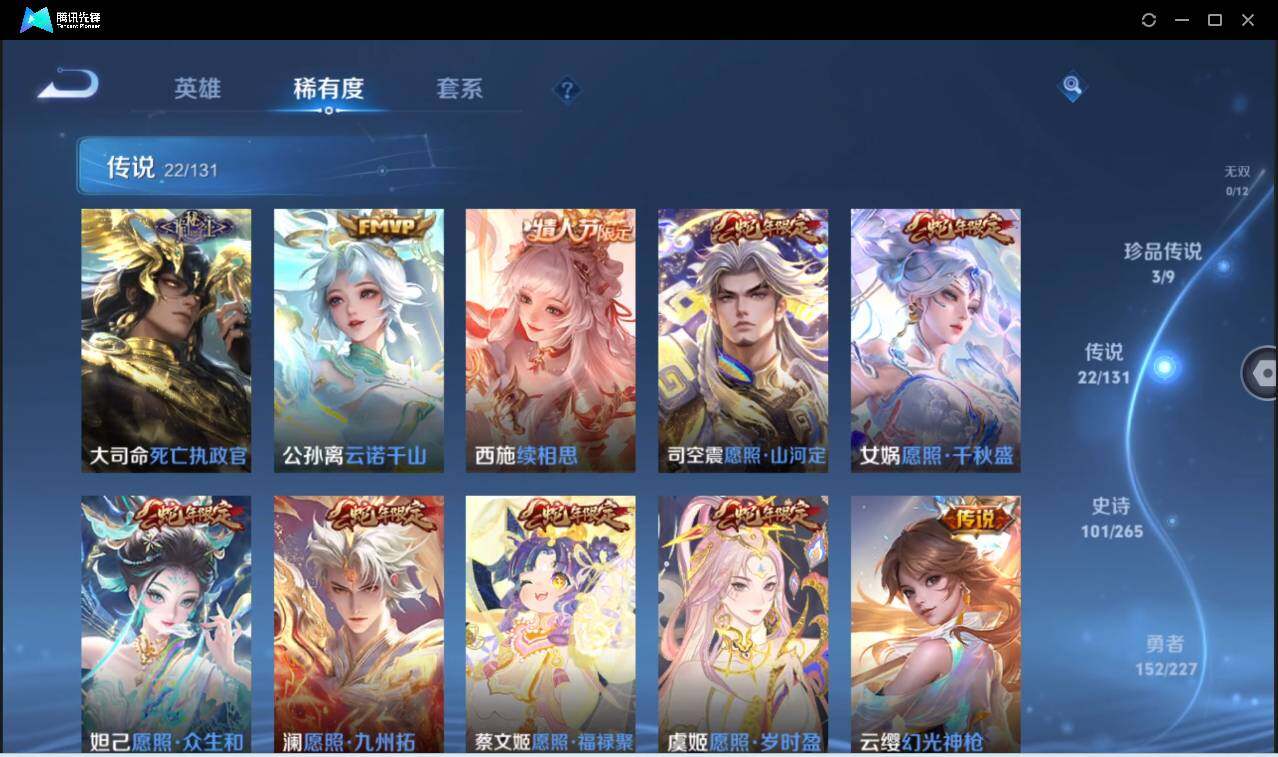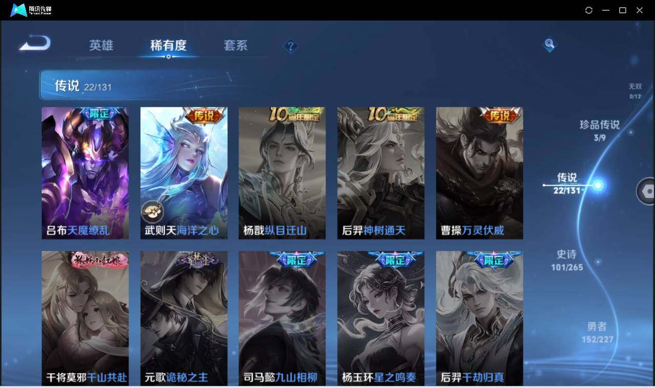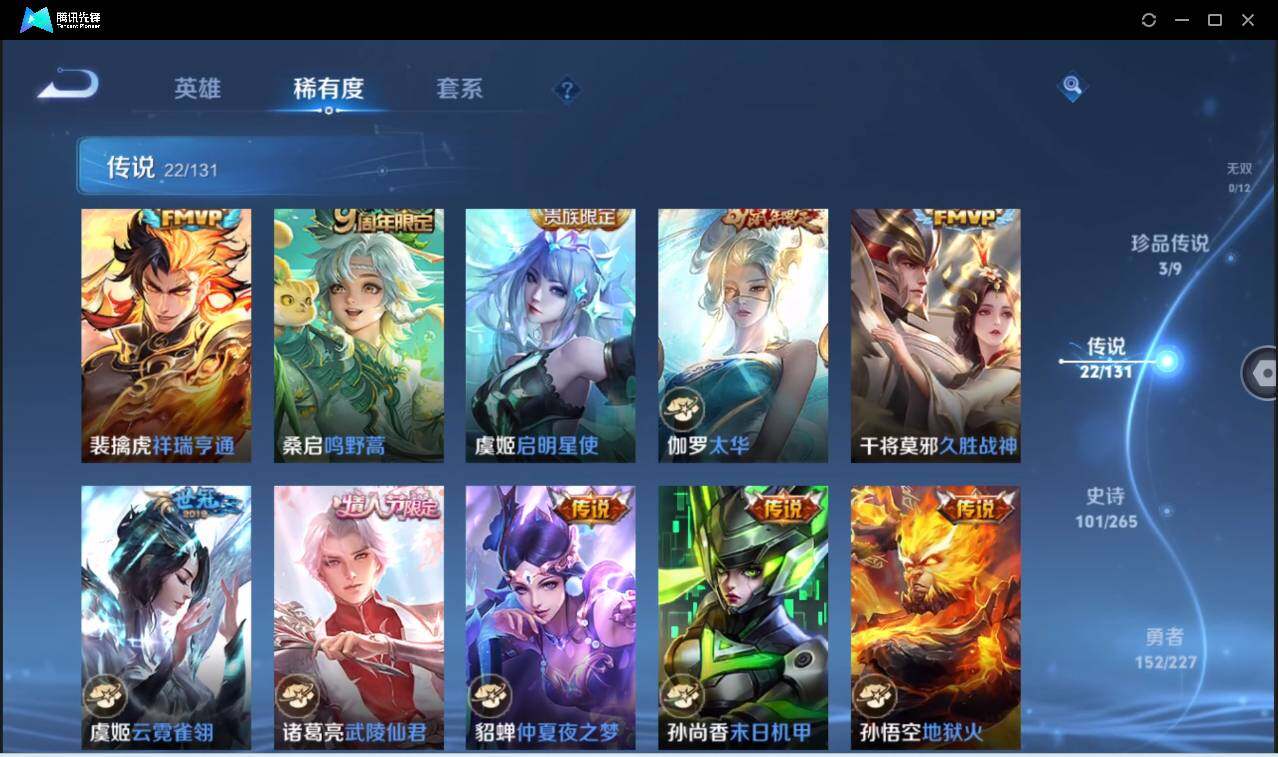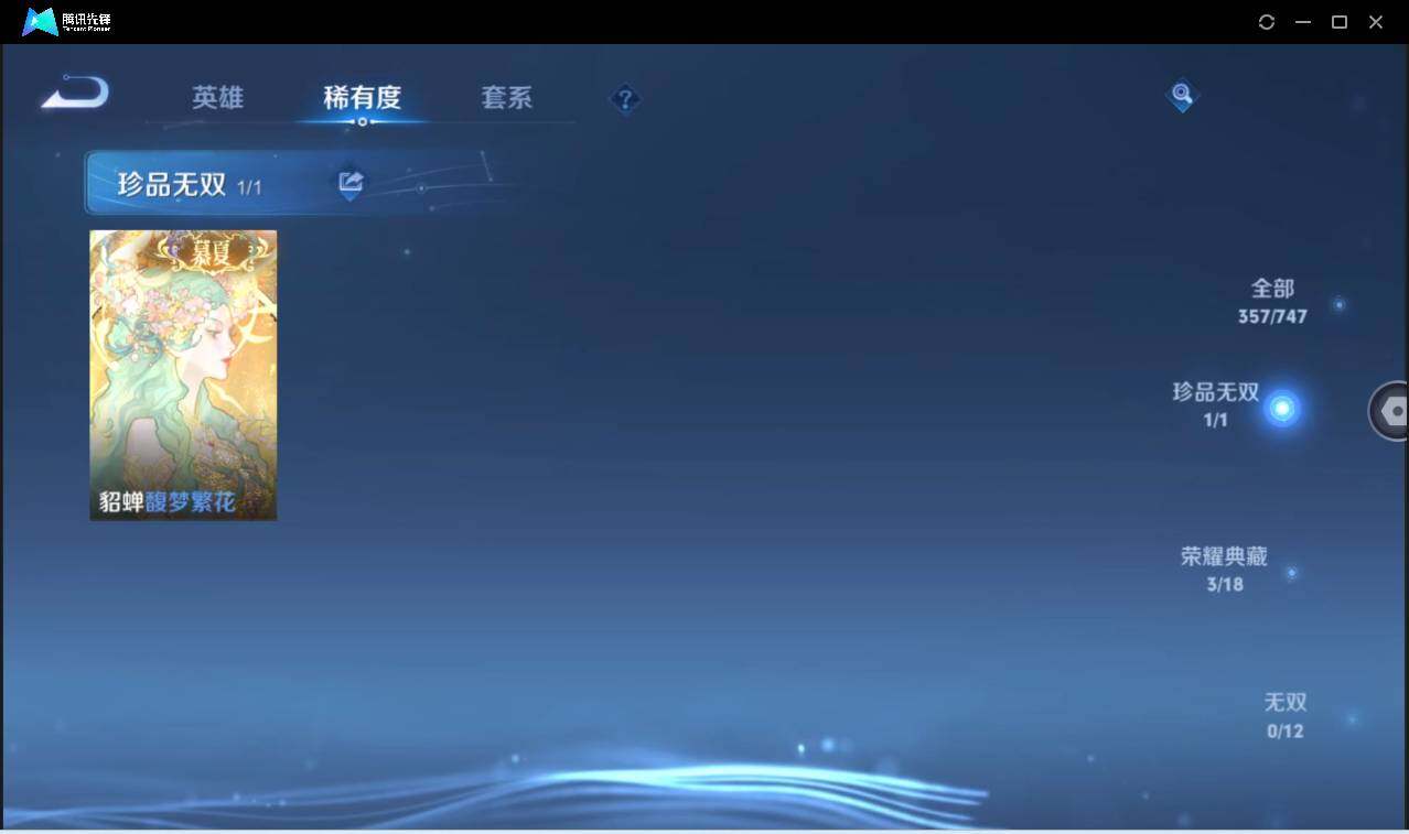 皮肤357 英雄128 至尊星耀 荣耀典藏4 珍品无双1 珍品传说2 传说22 其他皮肤138-