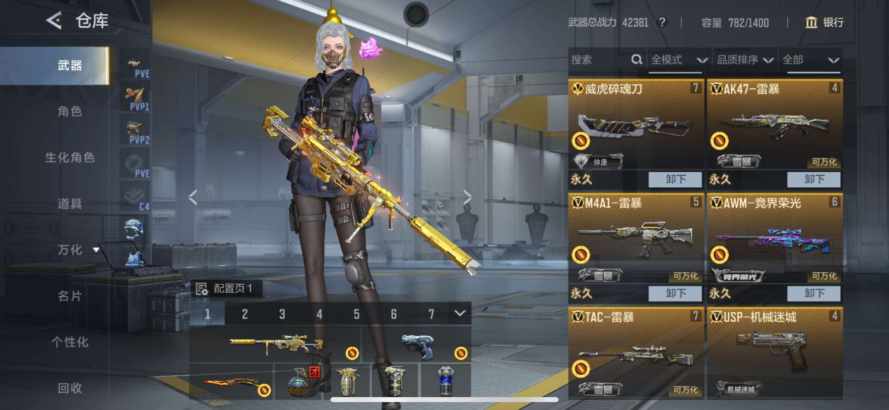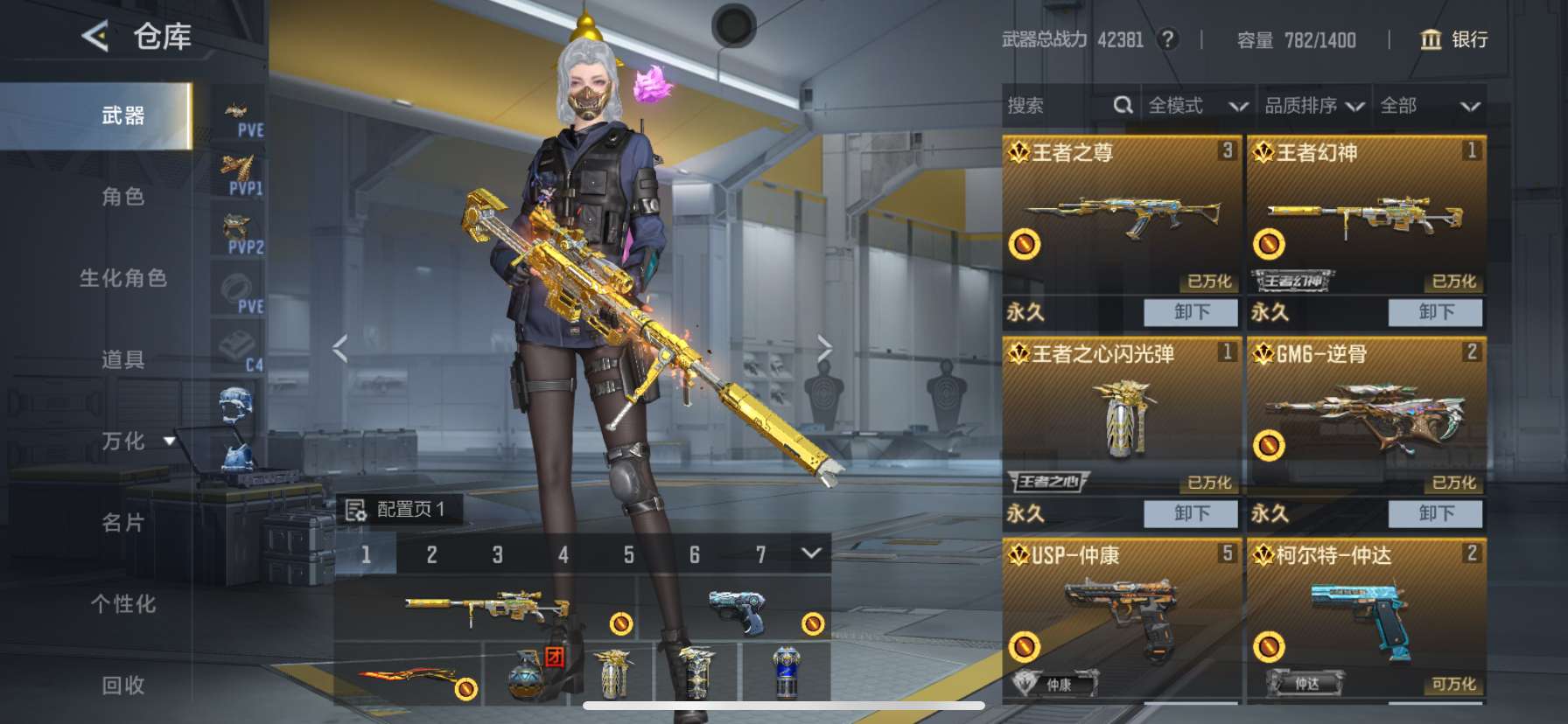 王者1典藏26史诗,王幻除皮肤外满配,雷暴雷霆m4,ak,awm,tac,巴雷特,副武器等,