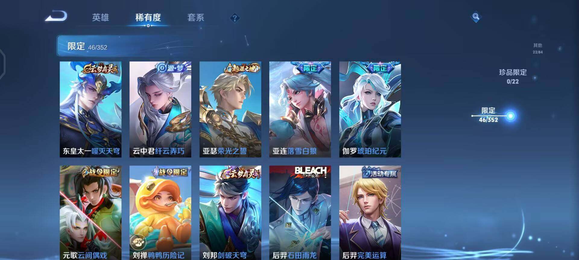 【限定皮肤】:狄仁杰阴阳师,赵云皇家上将,元歌云间偶戏,狄仁杰魔术师,达摩星际