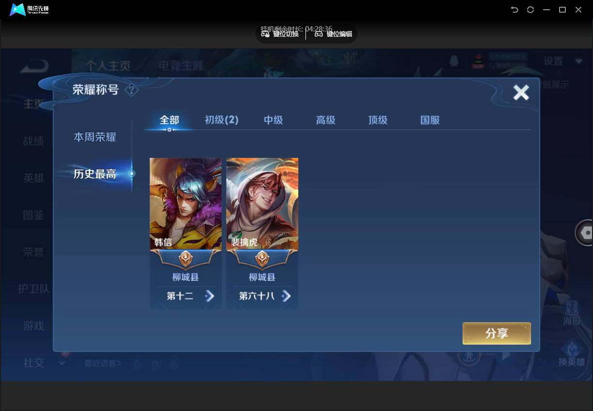 【W4473】【亮点:1.4k场次打野开局号】营地ID:1692387840【热门:乘龙铭钟鼎 寅虎赤拳 无双飞将 乘龙聚宝船 魔法小厨娘】安卓q-有二次-贵6-101英雄-60皮肤-4传说-22限定-1按键-贵族积分1w