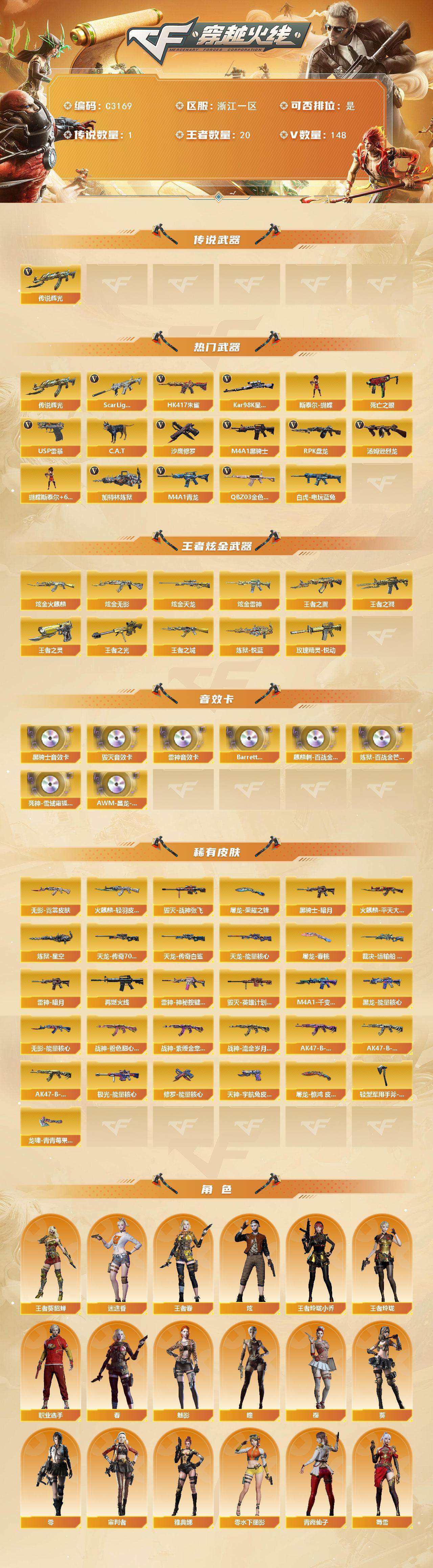 【C3169】浙江一区-148V-20王者-5炫金