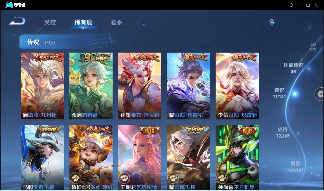 皮肤268 英雄126 最强王者 荣耀典藏1 传说11 其他皮肤90-
