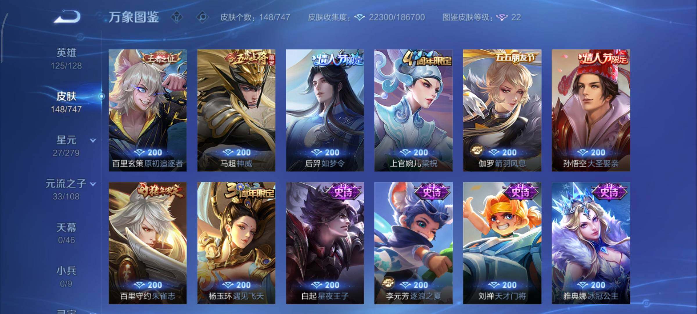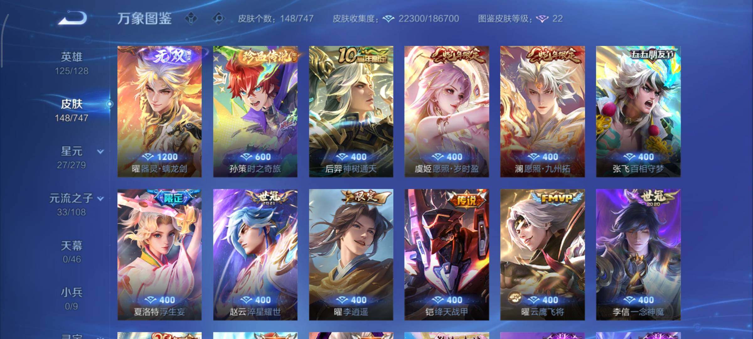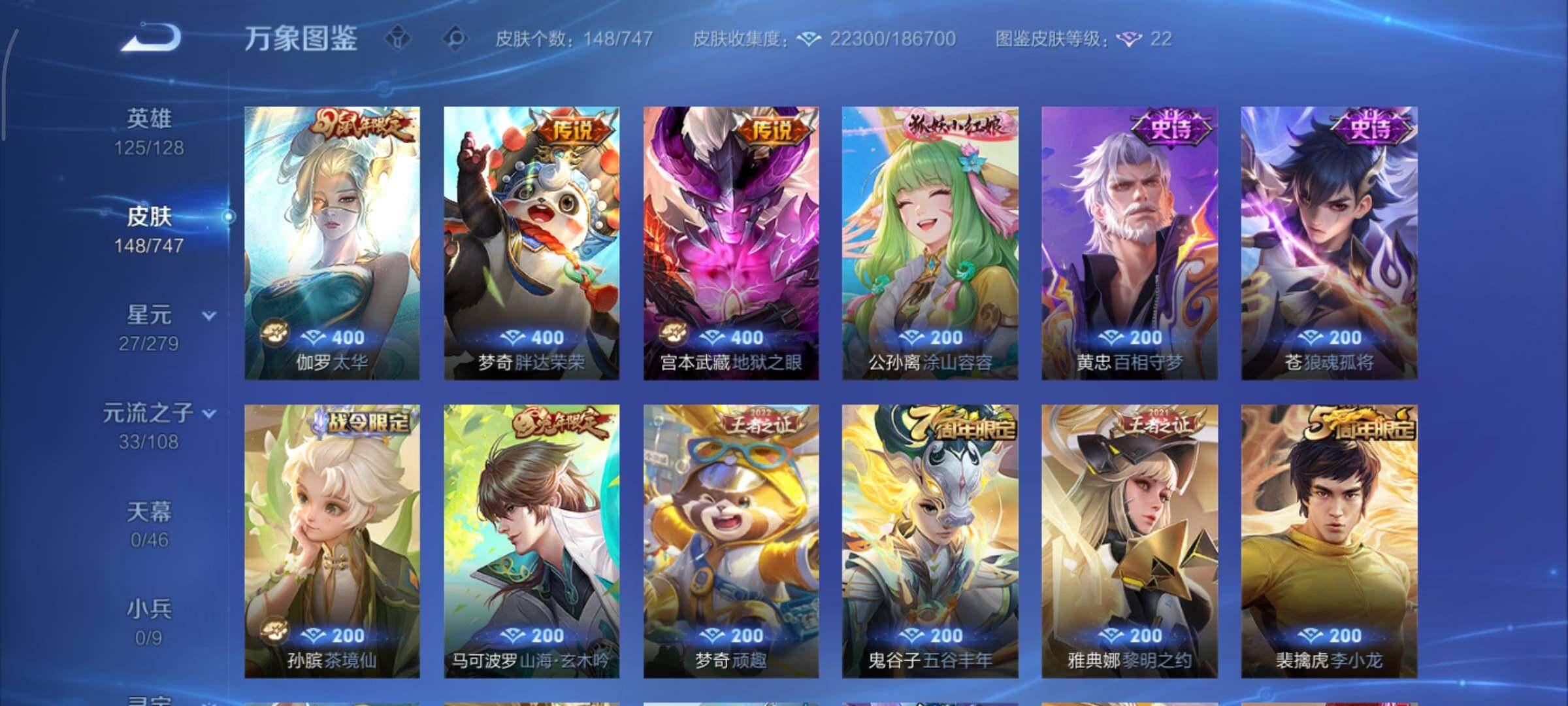 可换绑【性价比优质号 金标伽罗 金标曜 曜无双 浮生妄 孙策珍品 神威 李逍遥 多传说限定号】 幸运值244 3769星币 5按键,1星传说,22王者印记,五级铭文170,可二次KK7186,安卓Q-V7-148皮肤-1无双-1珍品传说-13传说-36史诗【无双皮肤】:曜器灵螭龙剑【珍品传说】:孙策时之奇旅【星元皮肤】:宫本武藏幽冥之眼【传说皮肤】:后羿神树通天,澜愿