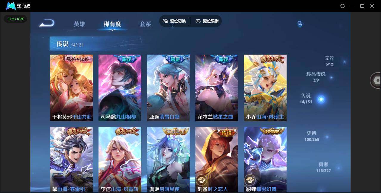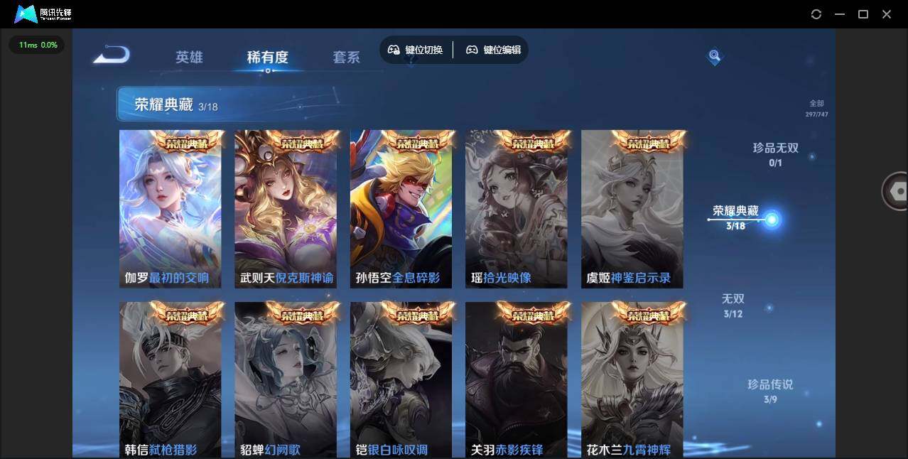 856947 王者荣耀账号 安卓Q-V9-最强王者段位-128英雄-297皮肤-3典藏皮肤-1典藏英雄-3无双-3珍品传说-14传说-100史诗