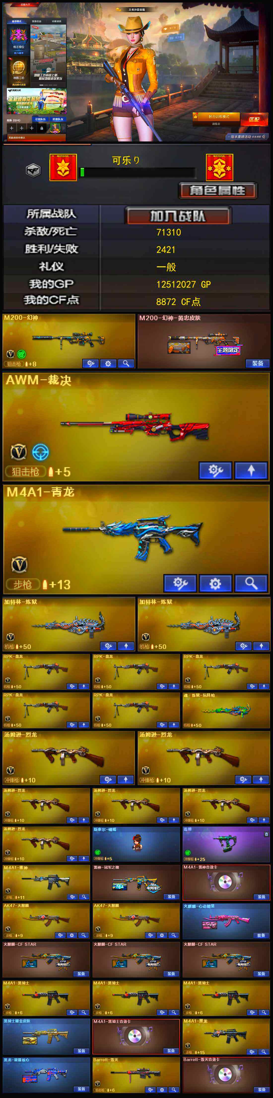 【CF3554】江苏一区-66V-6王者-0炫金【幻神1皮】【6烈龙】【毒蜂】【斯泰尔-蝴蝶】【M200-幻神】【M200-幻神-黄忠皮肤】【AWM-裁决】【M4A1-青龙】【加特林-炼狱】【RPK-盘龙】【魂·炼狱-玩具枪】【汤姆逊-烈龙】【斯泰尔-蝴蝶】【毒蜂】【乔伊教练】【王者沙漠玫瑰】【魅影】【M4A1-雷神】【雷神-冠军之魄】【M4A1-雷神音效卡】【AK47-火麒麟】【火麒麟-心动糖果】【火麒麟-CFSTAR】【M4A1-黑骑士】【黑骑士耀金皮肤】【M4A1-黑骑士音效卡】【M4A1