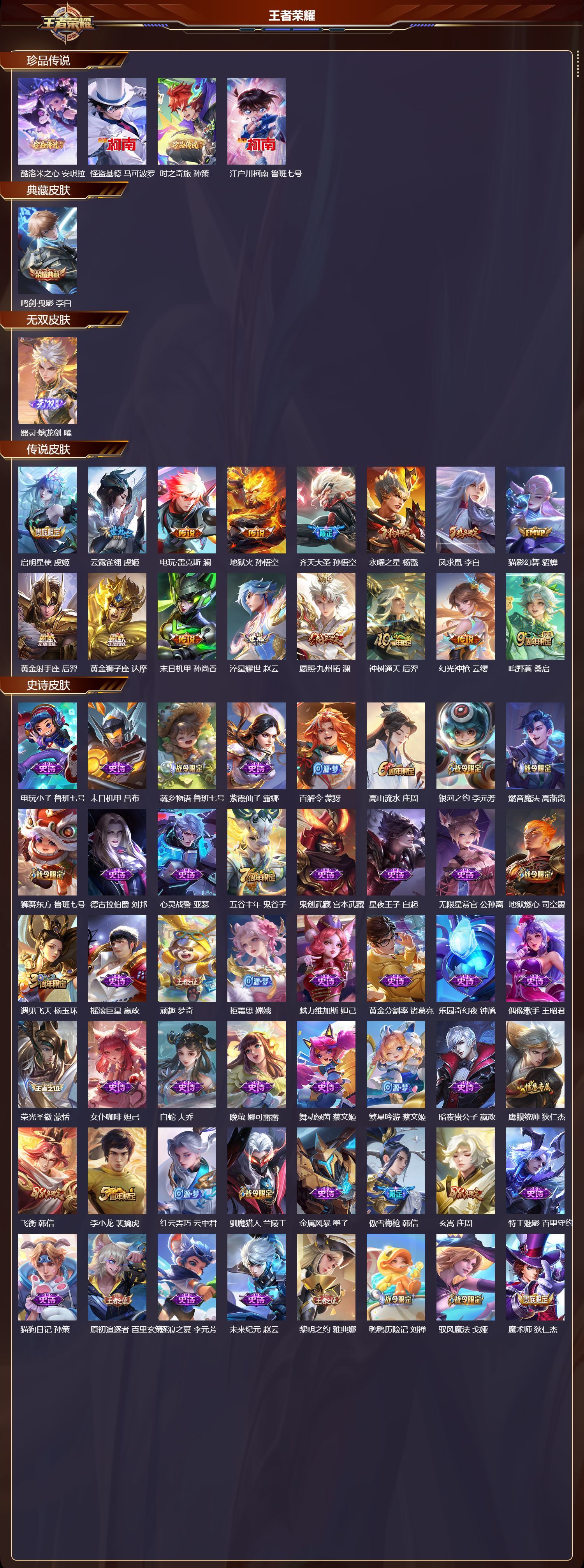 苹果QQ/非凡王者/345皮肤/125英雄/1典藏/0珍品无双/1无双/4珍品传说/16传说/94史
