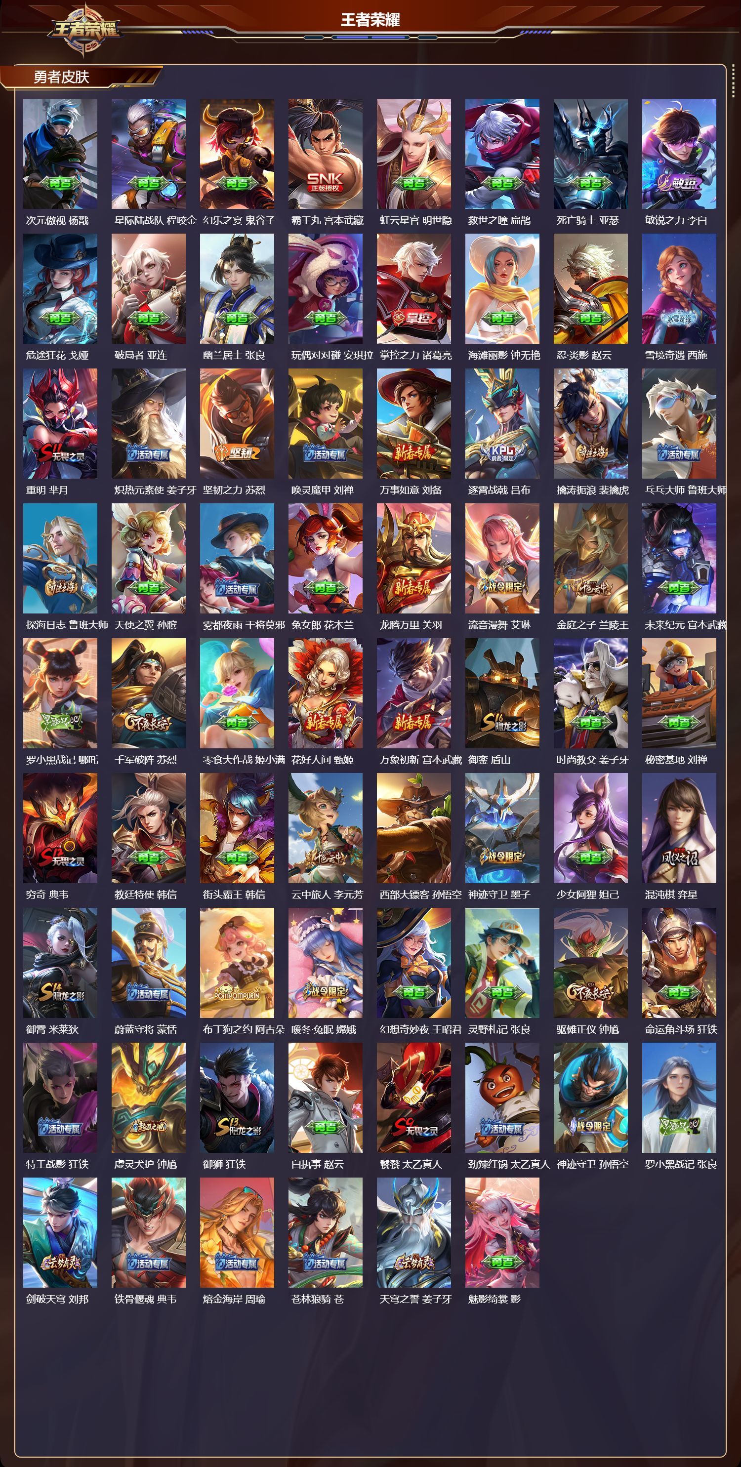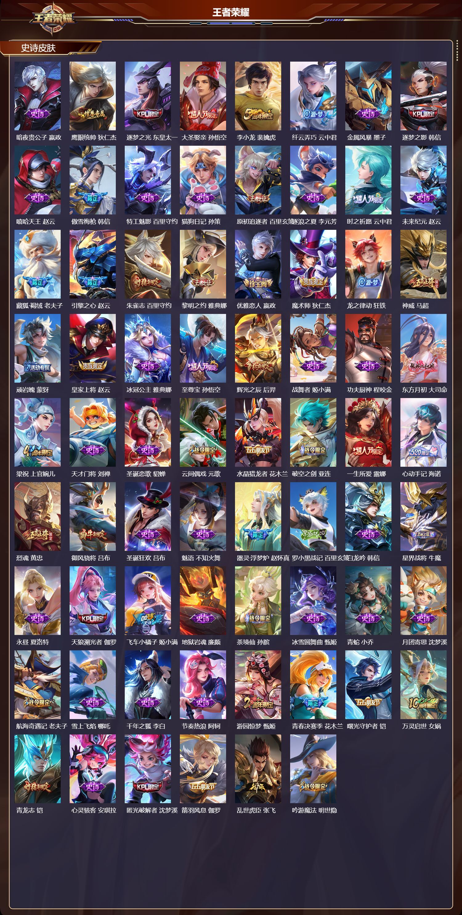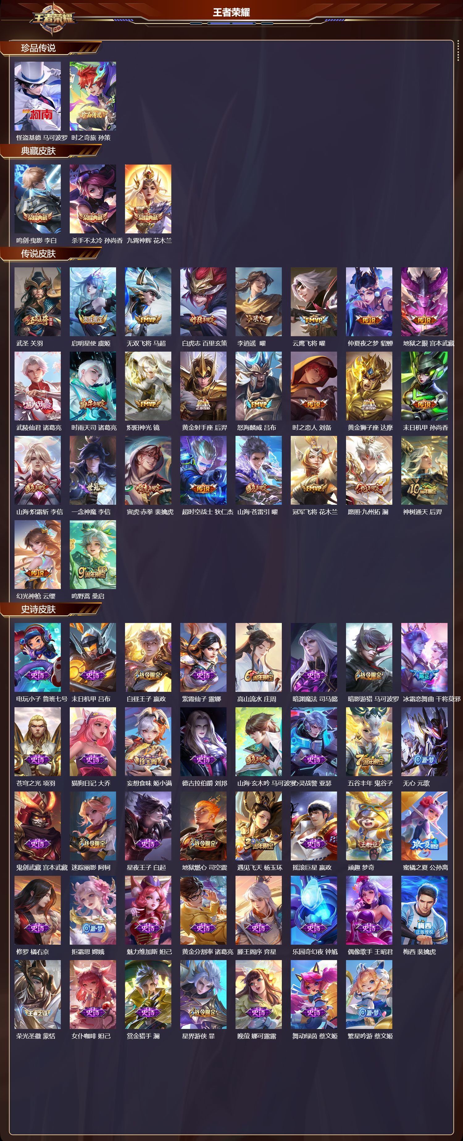 苹果QQ/荣耀王者/370皮肤/127英雄/3典藏/0珍品无双/0无双/2珍品传说/26传说/118