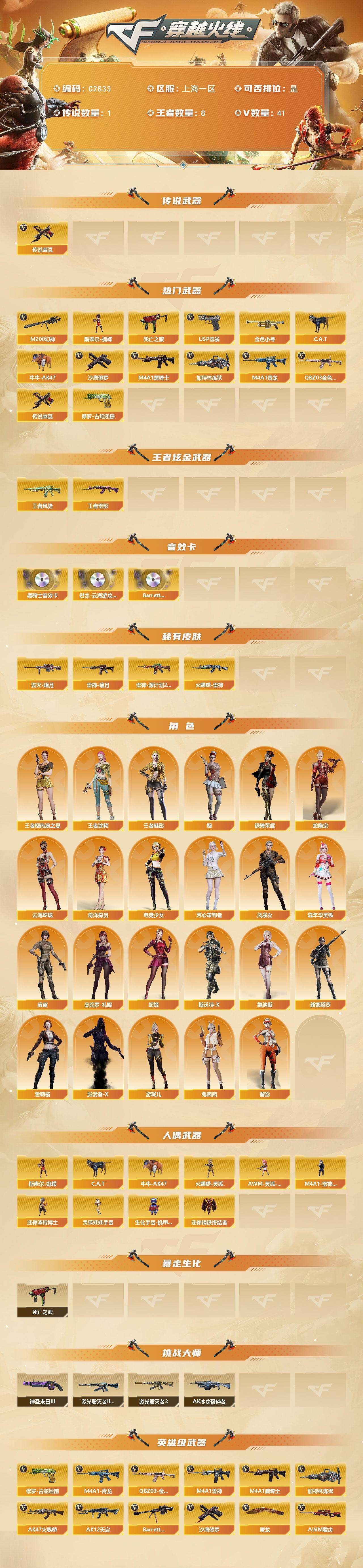 【热门武器】:传说幽冥,QBZ03-金色蔷薇,M4A1-青龙,M200-幻神,修罗-古蛇迷踪,死亡之眼,金色小号,C.A.T,牛牛-AK47,M4A1-黑骑士,加特林-炼狱,斯泰尔-蝴蝶,USP-雷暴*2,沙鹰-修罗