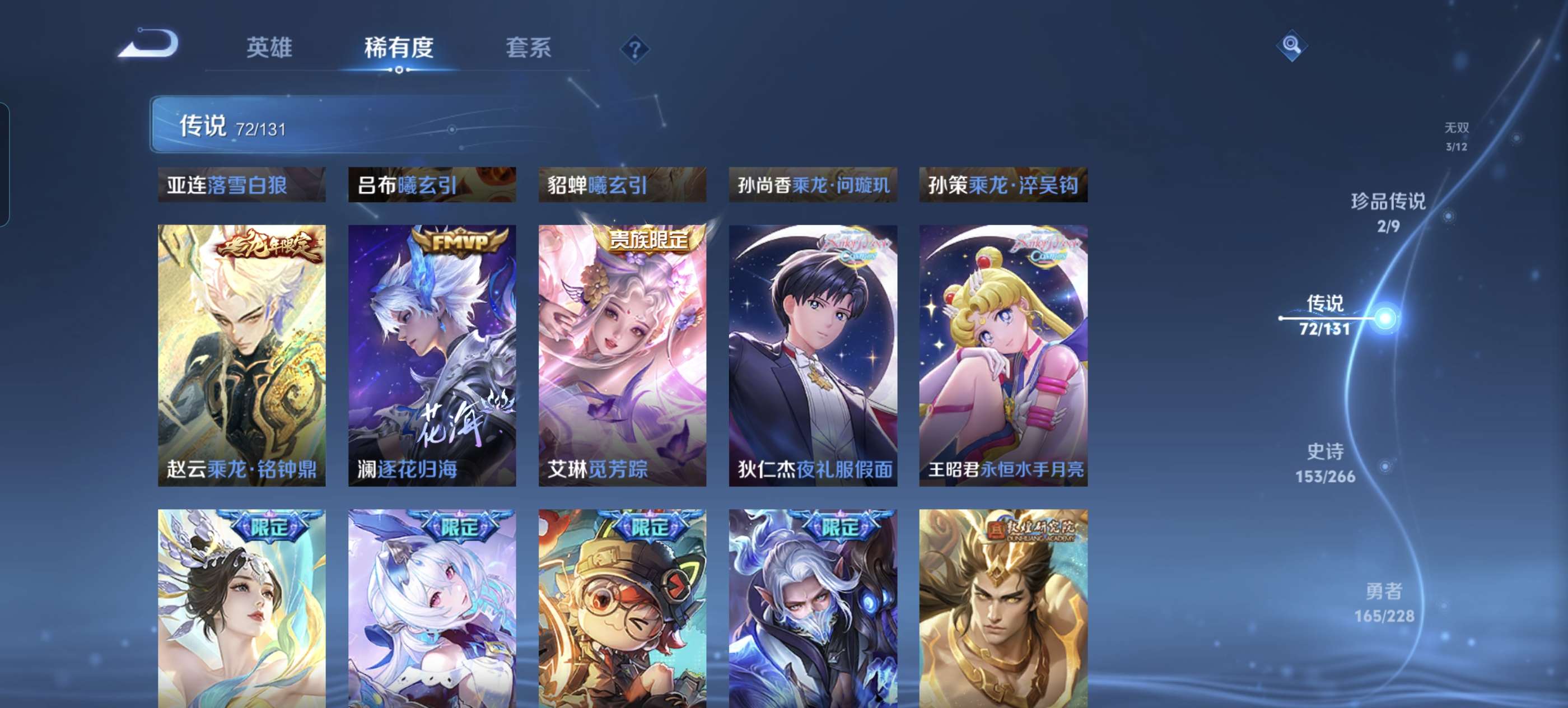 皮肤478 英雄128 荣耀王者 荣耀典藏2 无双皮肤3 珍品传说2 传说72 其他皮肤181-安卓