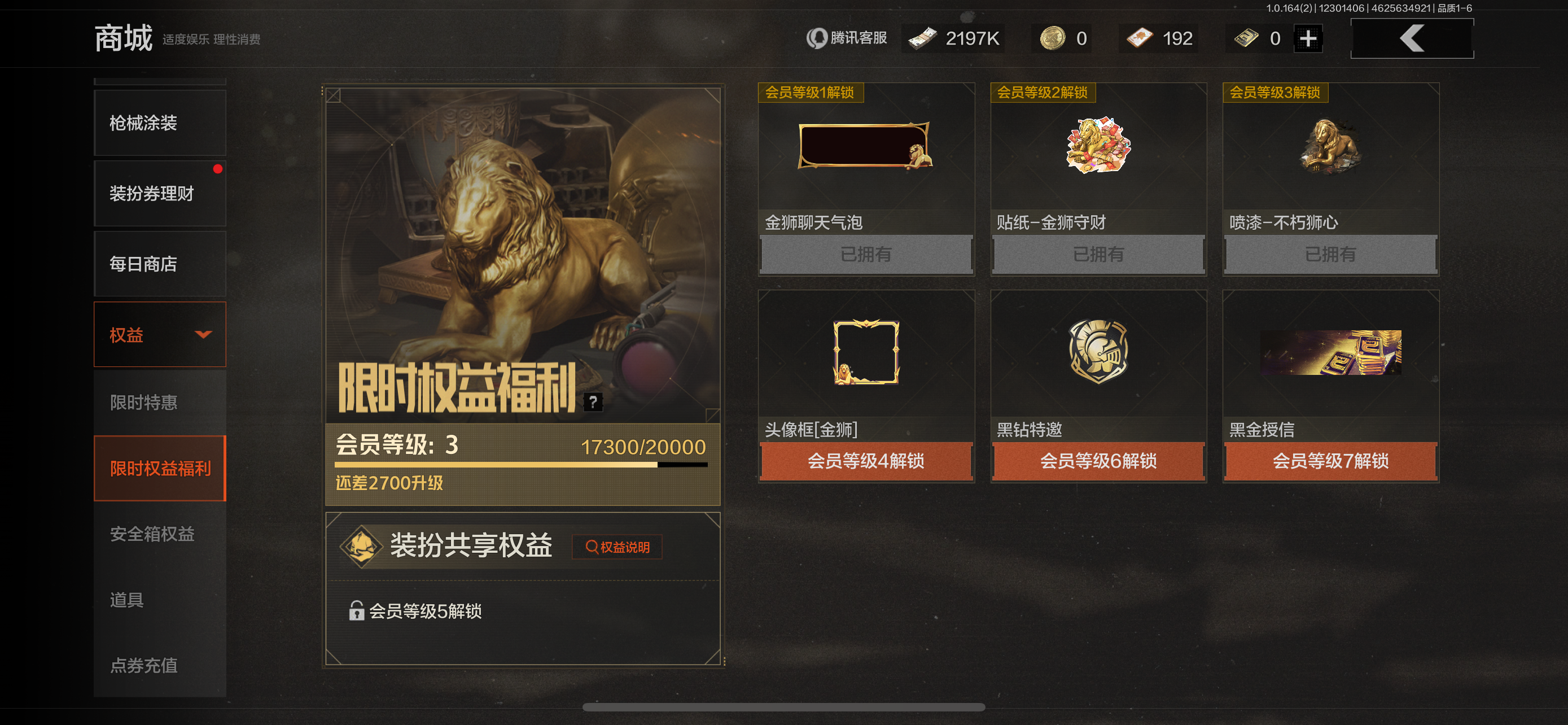 氪条1700,V3账号,有赢家匕首和火绒