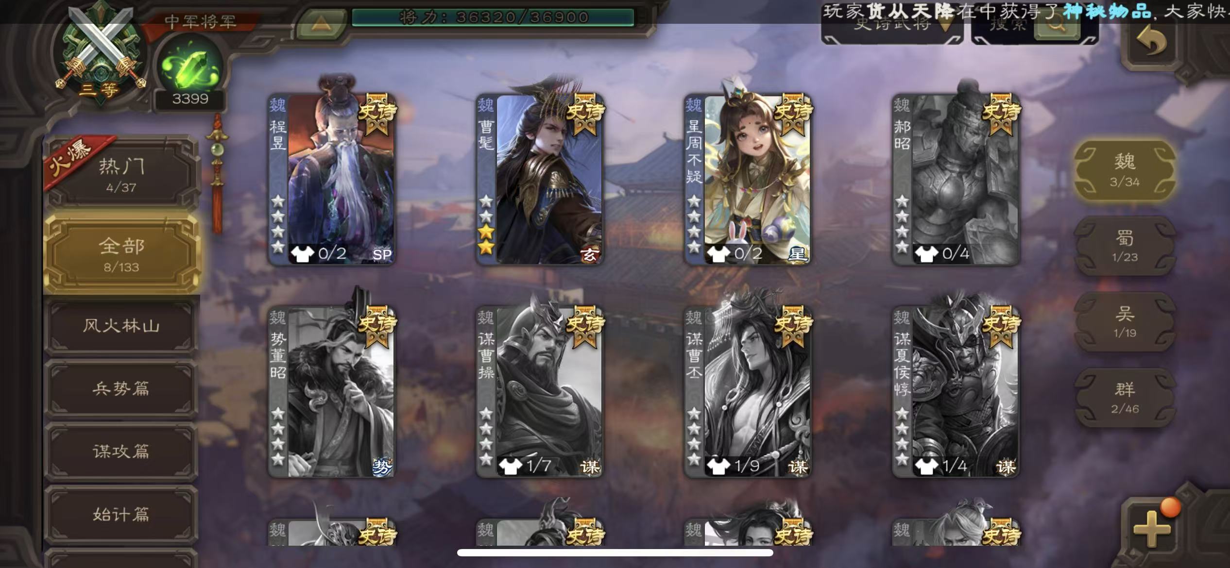 史诗武将数量: