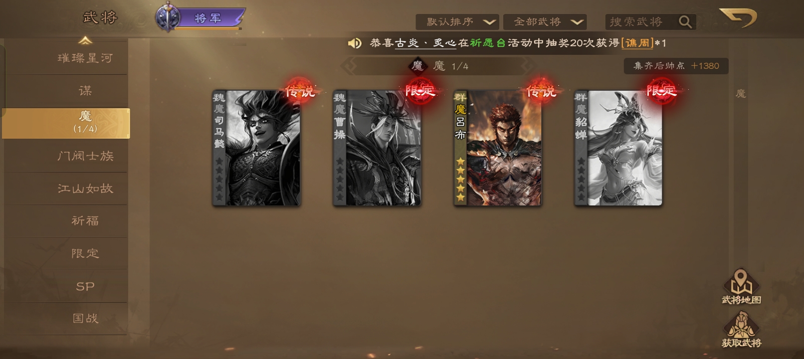 死绑单人号找回包赔0活跃度,296武将大祈福米妹台魔吕布族王咏10神将11传说武将有许攸张秀等等
