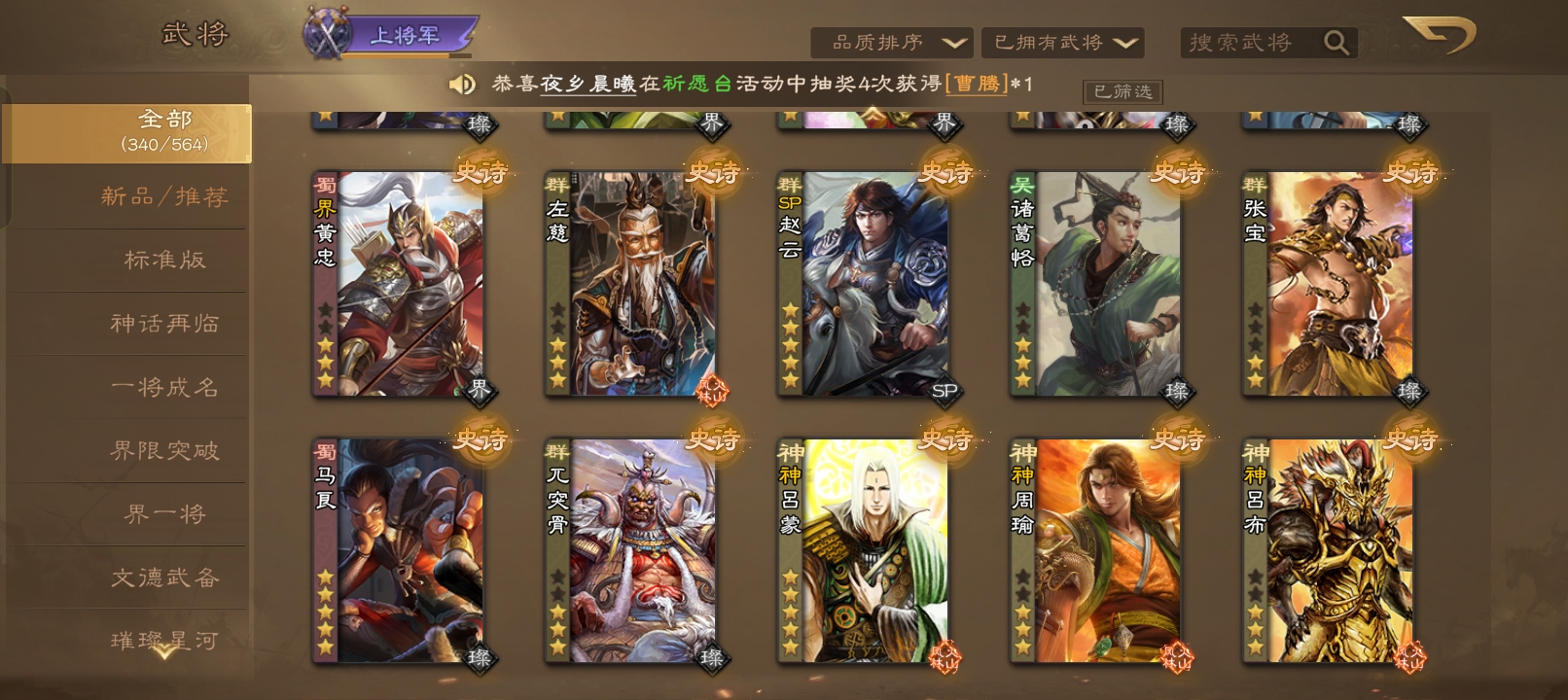 死绑单人号找回包赔活跃度为0,340武将20传说小祈福花鬘王蓉夏侯玄有彭杨许攸张秀程煜界左慈等等