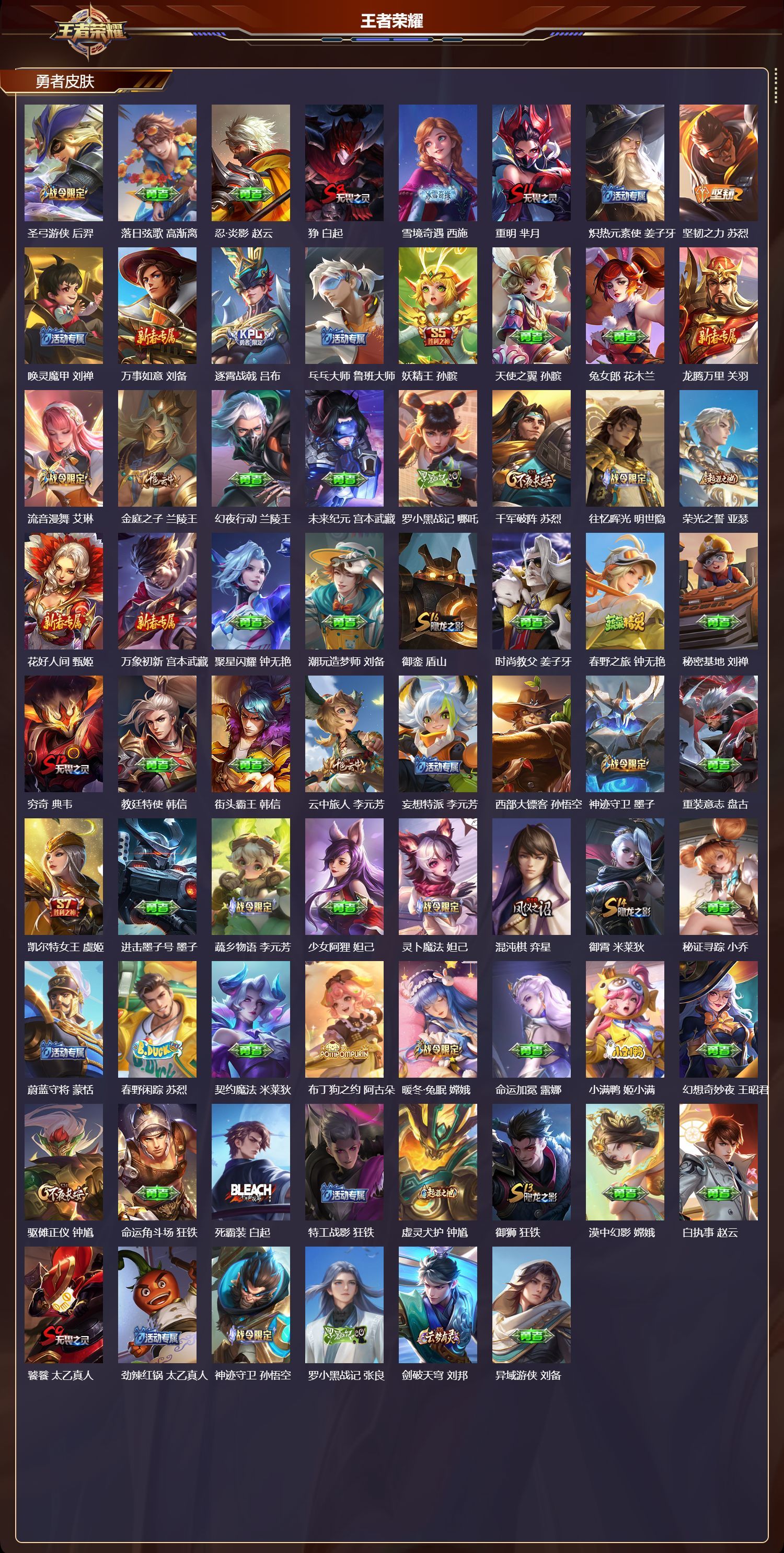 安卓QQ/无双王者/379皮肤/127英雄/1典藏/0珍品无双/3无双/1珍品传说/30传说/98史