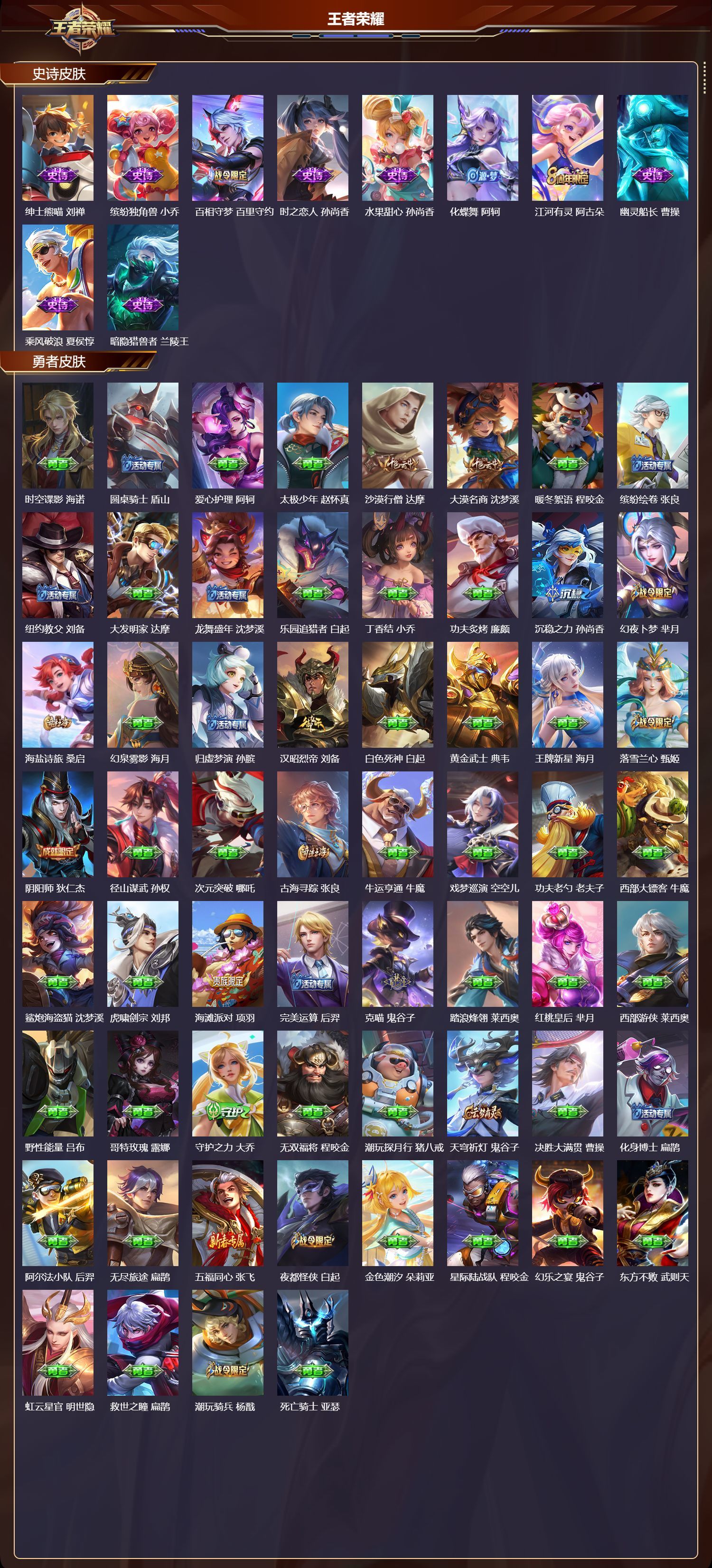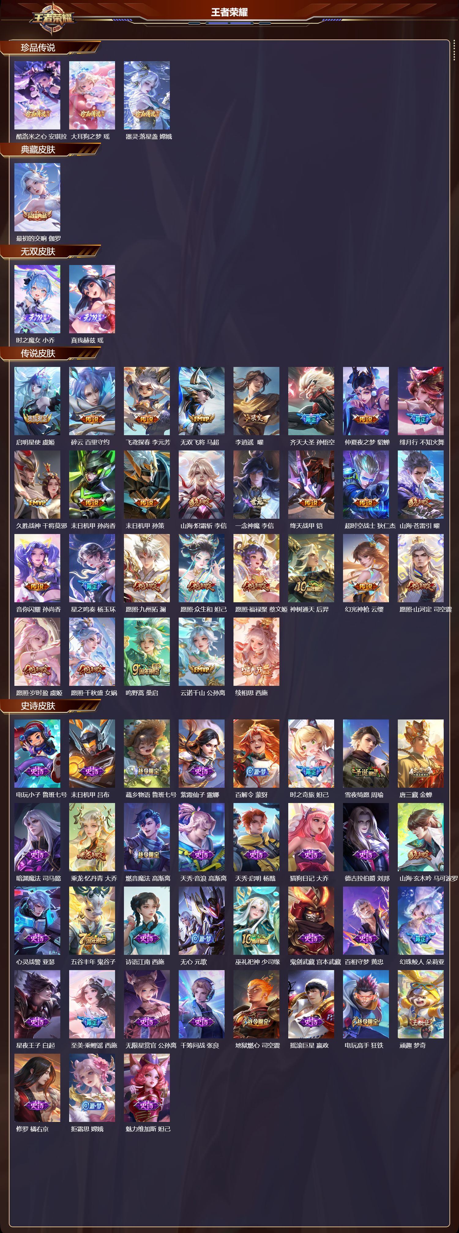 安卓QQ/绝世王者/371皮肤/125英雄/1典藏/0珍品无双/2无双/3珍品传说/29传说/115