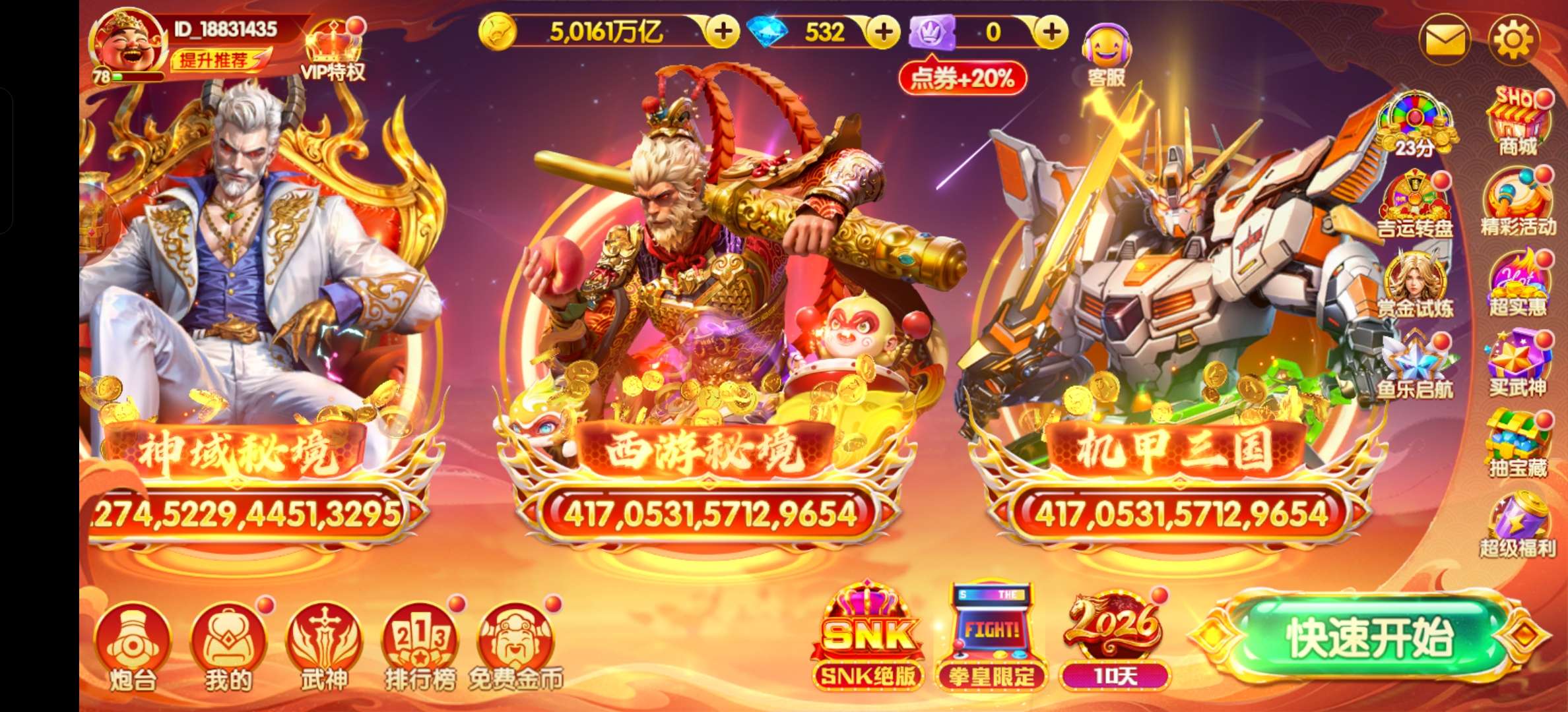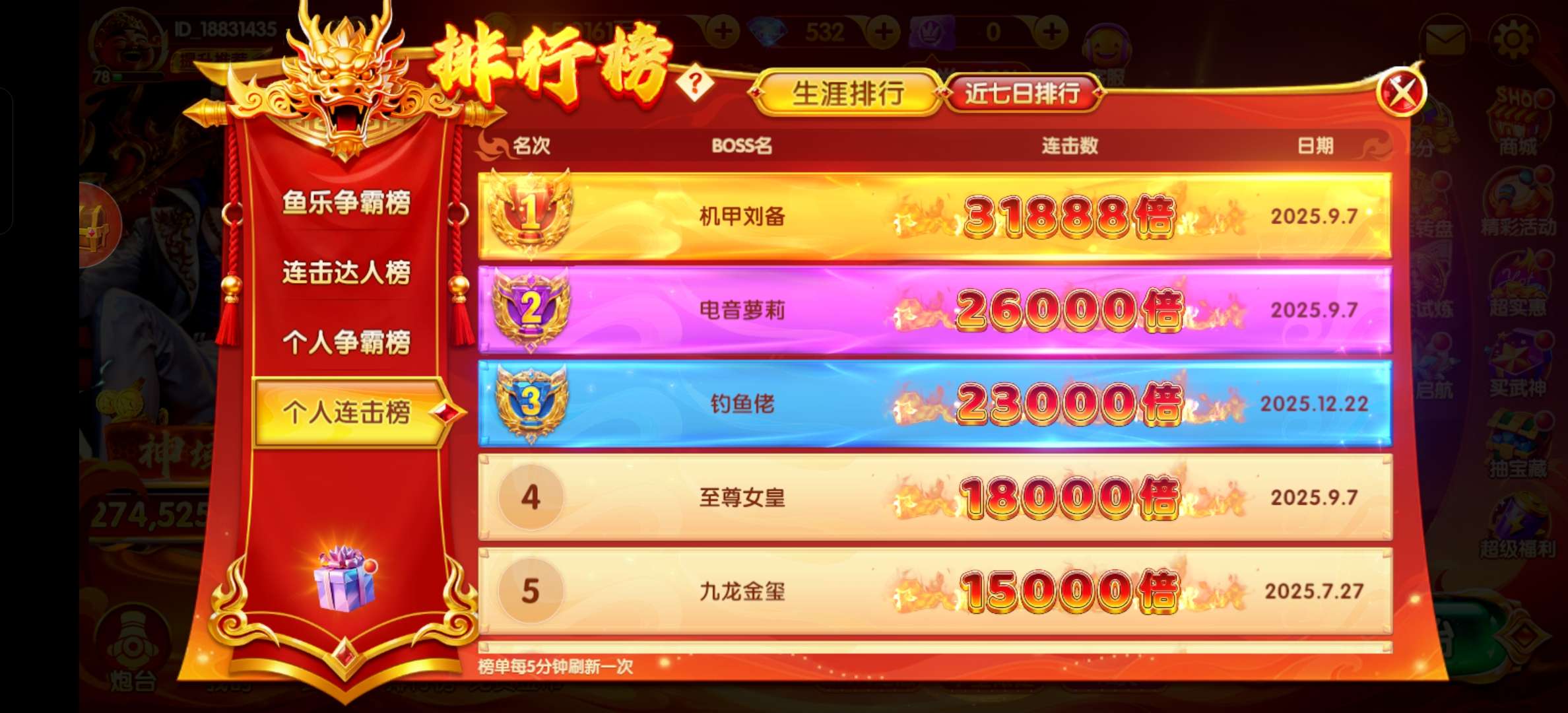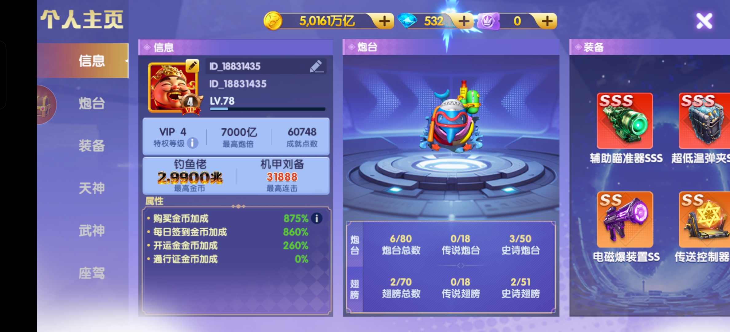 鱼乐达人 新号买断5京7000亿炮 吞首杀 4个武神马上可以600连砍小米安卓机通用,能换绑,商家