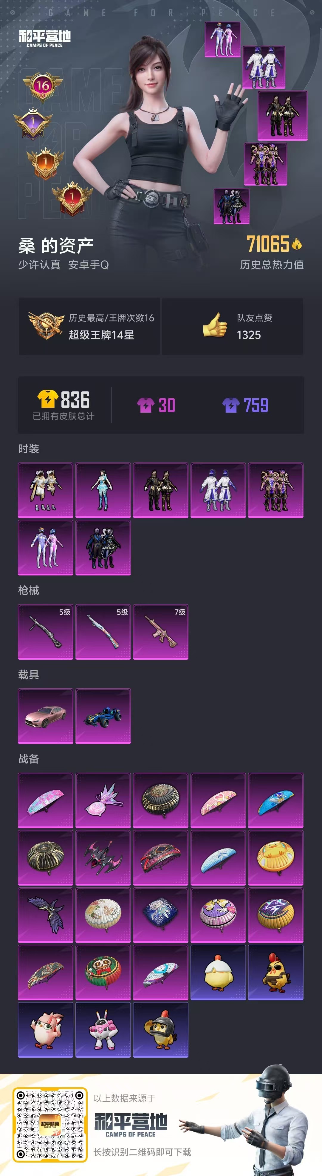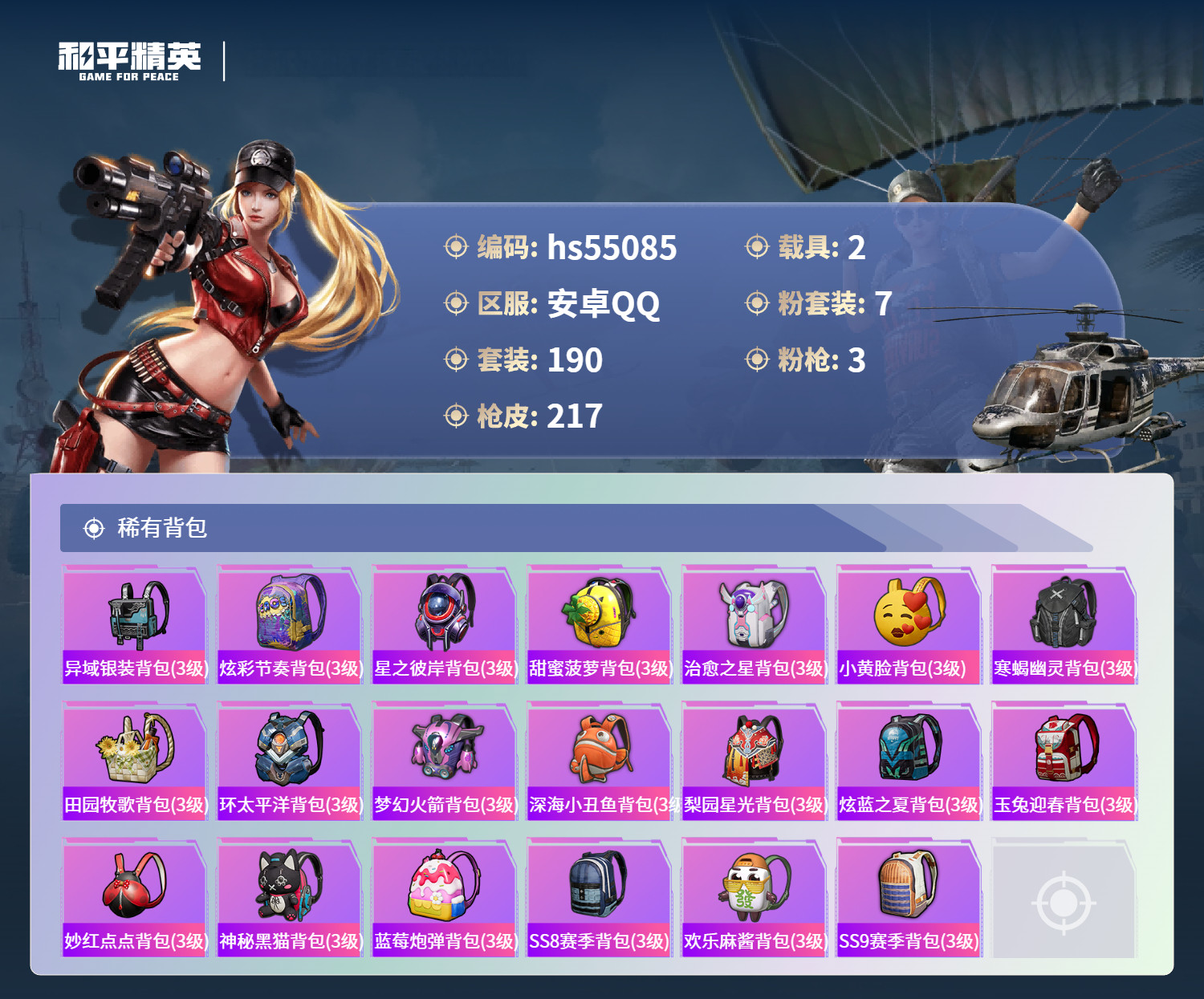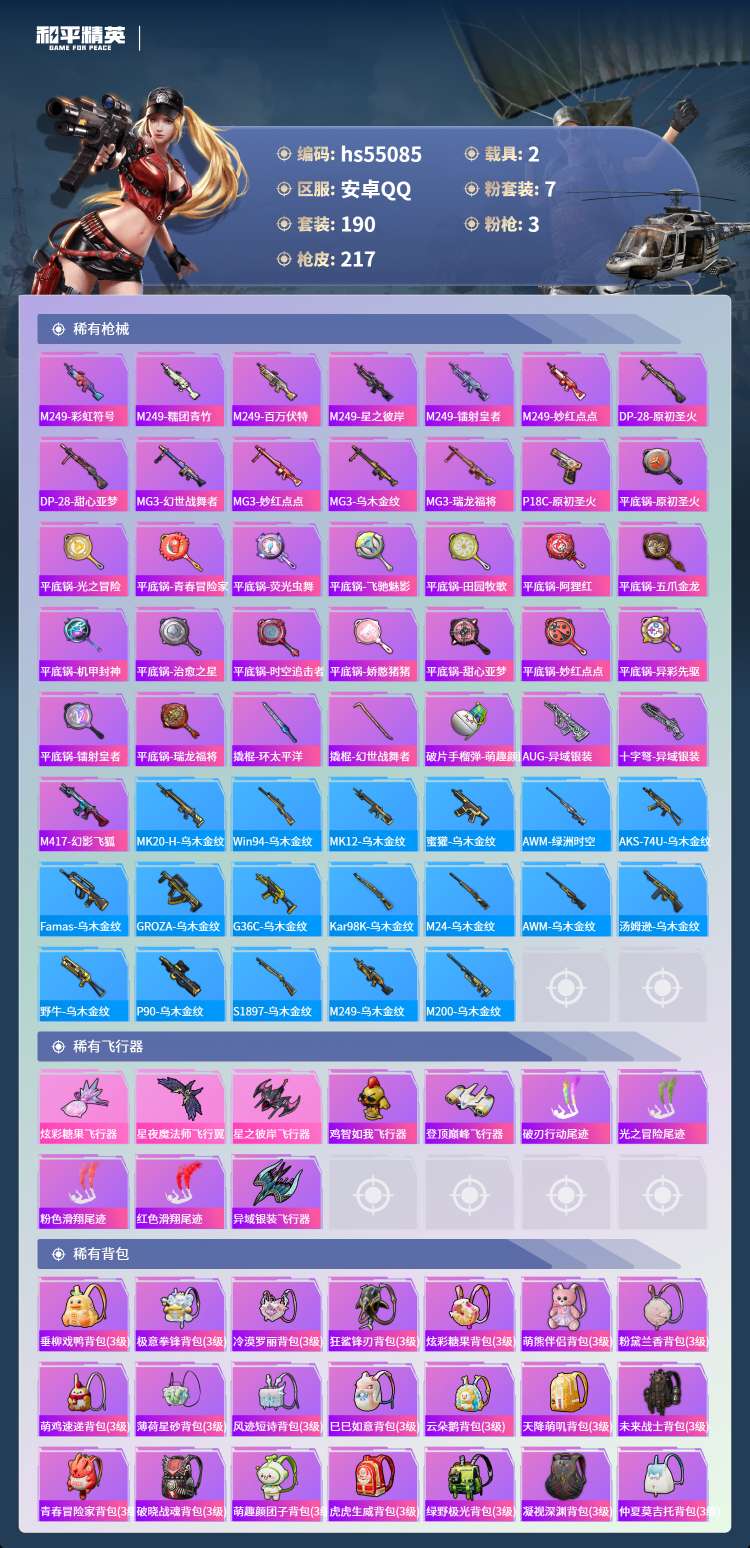 hs55085 安卓手Q-16王牌印记-7粉装-3特效枪-2载具-71065热力值-190套装-21