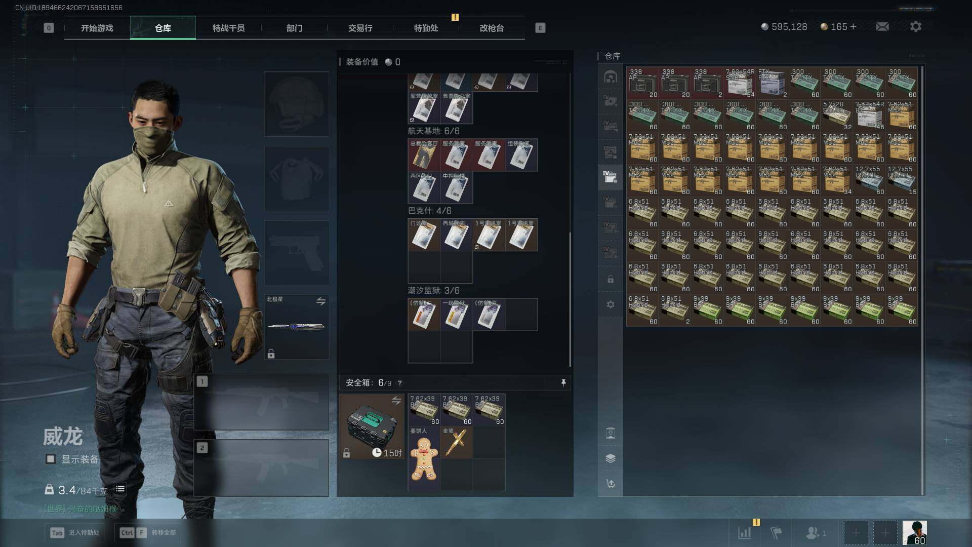 总资产(M):159M/哈夫币(K):595K/哈夫币(K):595K/传说枪皮数:24/全面战场等