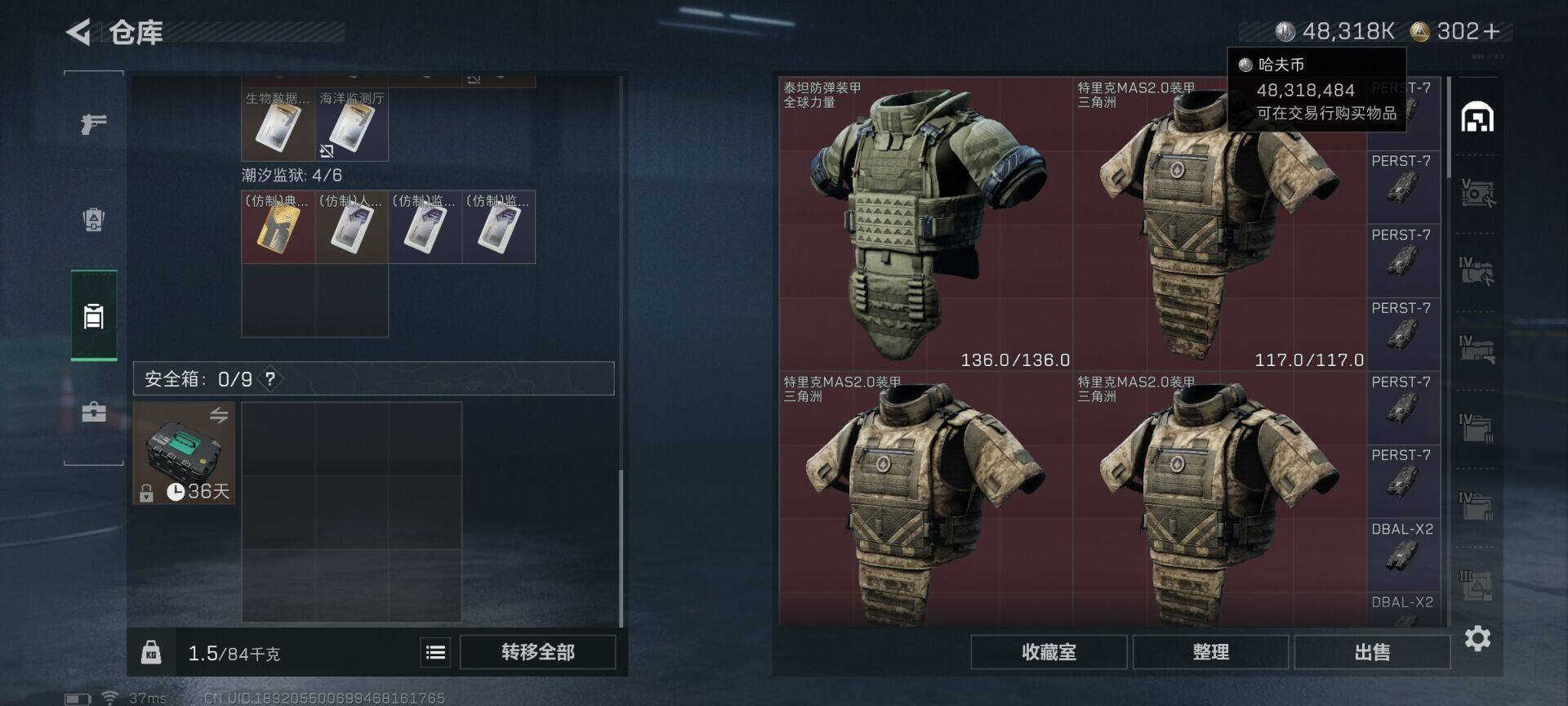 总资产(M):292M/哈夫币(K):48318K/哈夫币(K):48318K/全面战场等级:48_