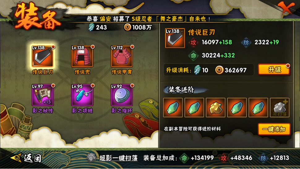 534W战力创斑绿牛/13S+328祈愿A忍战凯、9个198