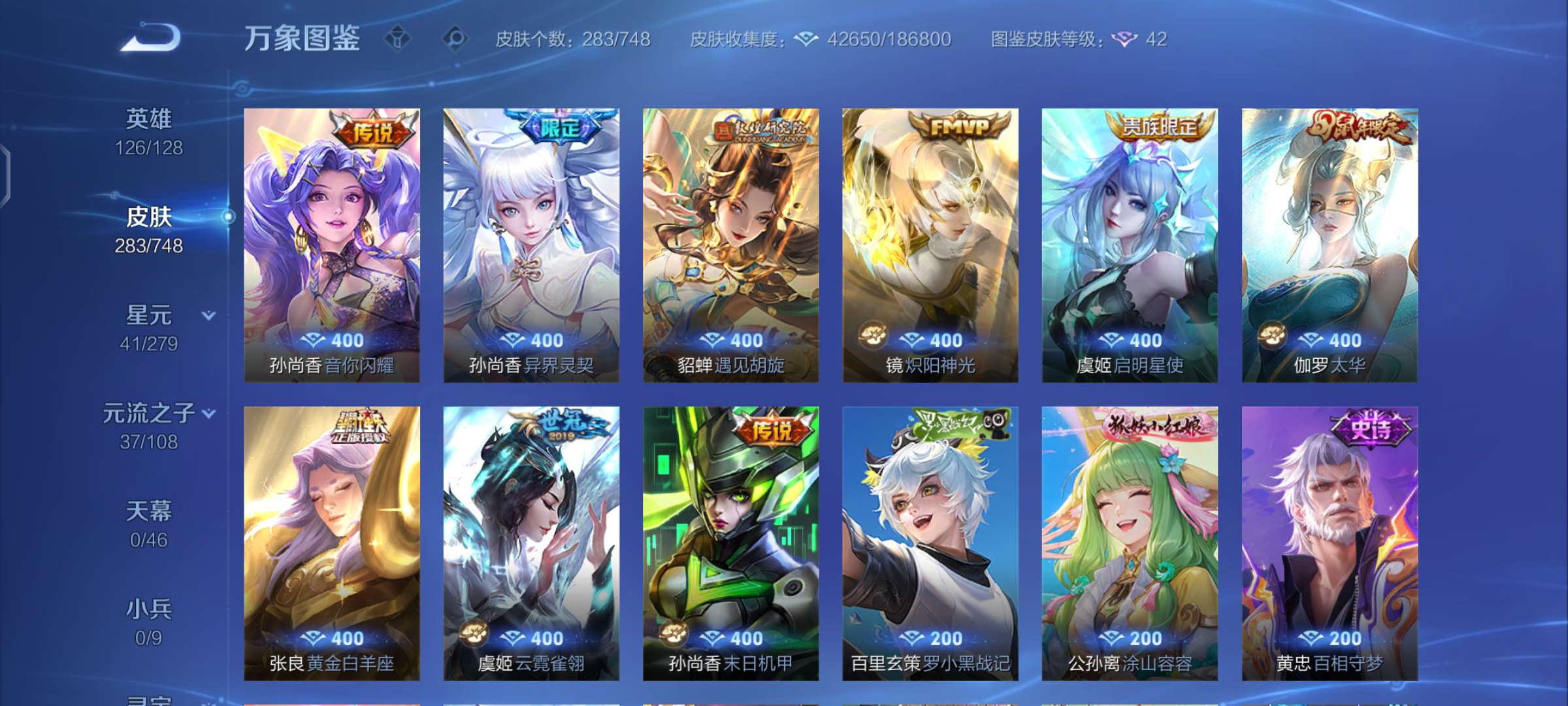 漂亮女号大乔时之,孙尚香差典藏全皮,虞姬差fmvp全皮