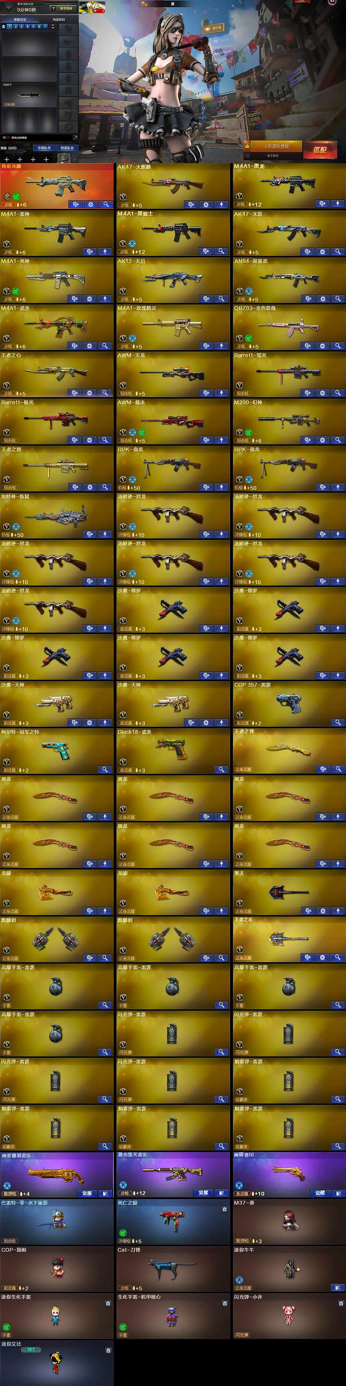 【热门武器】:传说光耀,QBZ03-金色蔷薇,M200-幻神,死亡之眼,柯尔特-冠军之特,Cat-刀锋,M4A1-黑骑士,汤姆逊-烈龙*6,RPK-盘龙*2,加特林-炼狱,降世魔童,沙鹰-修罗*5