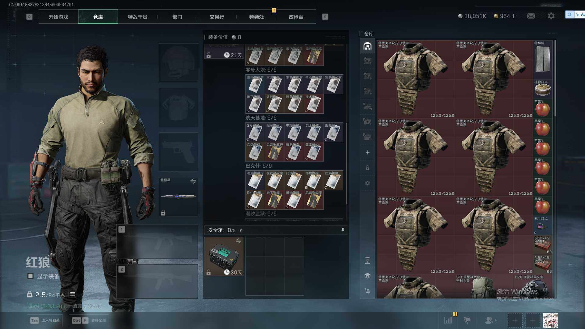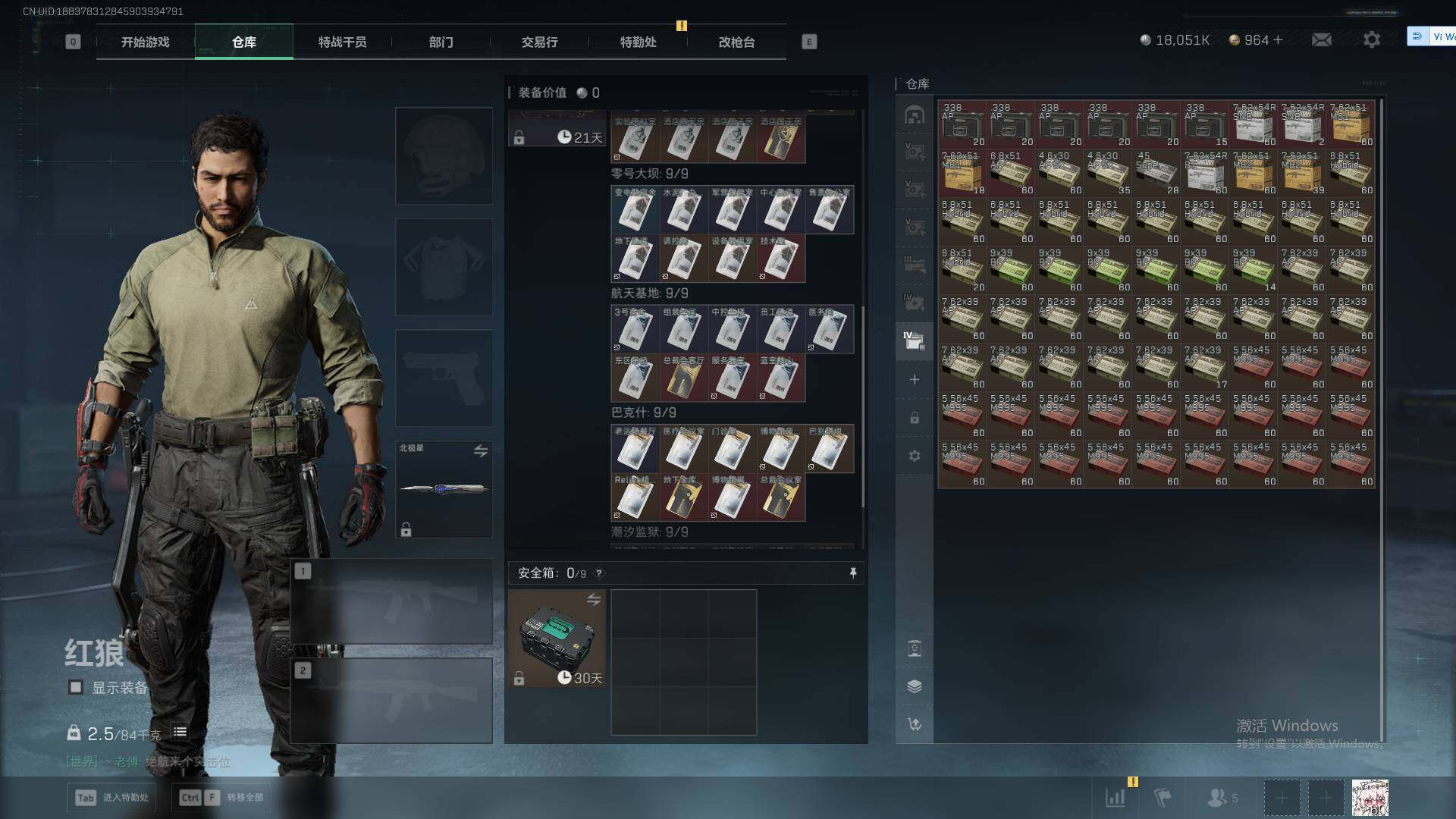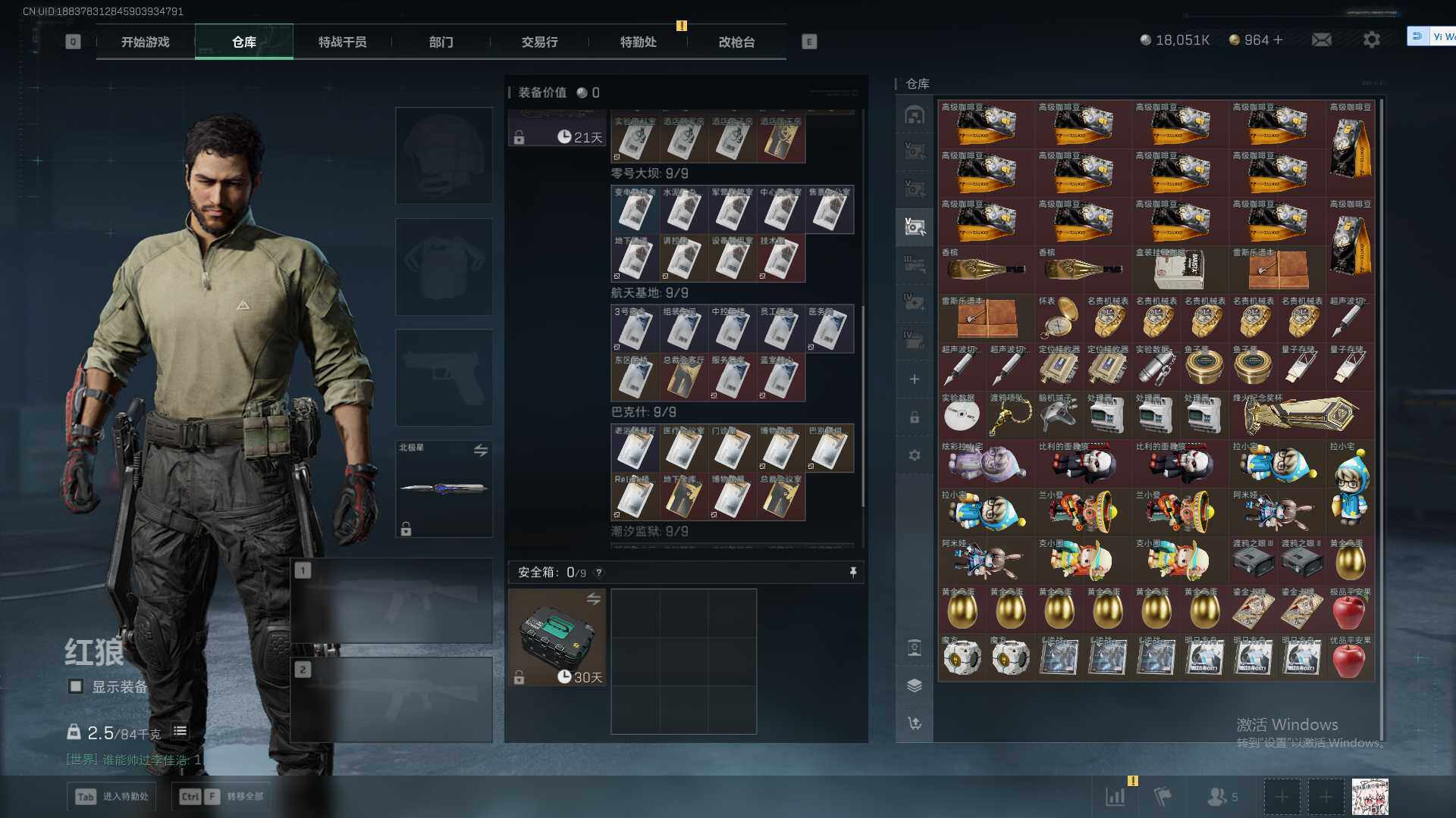 总资产(M):371M/哈夫币(K):18051K/哈夫币(K):18051K/传说枪皮数:23/全