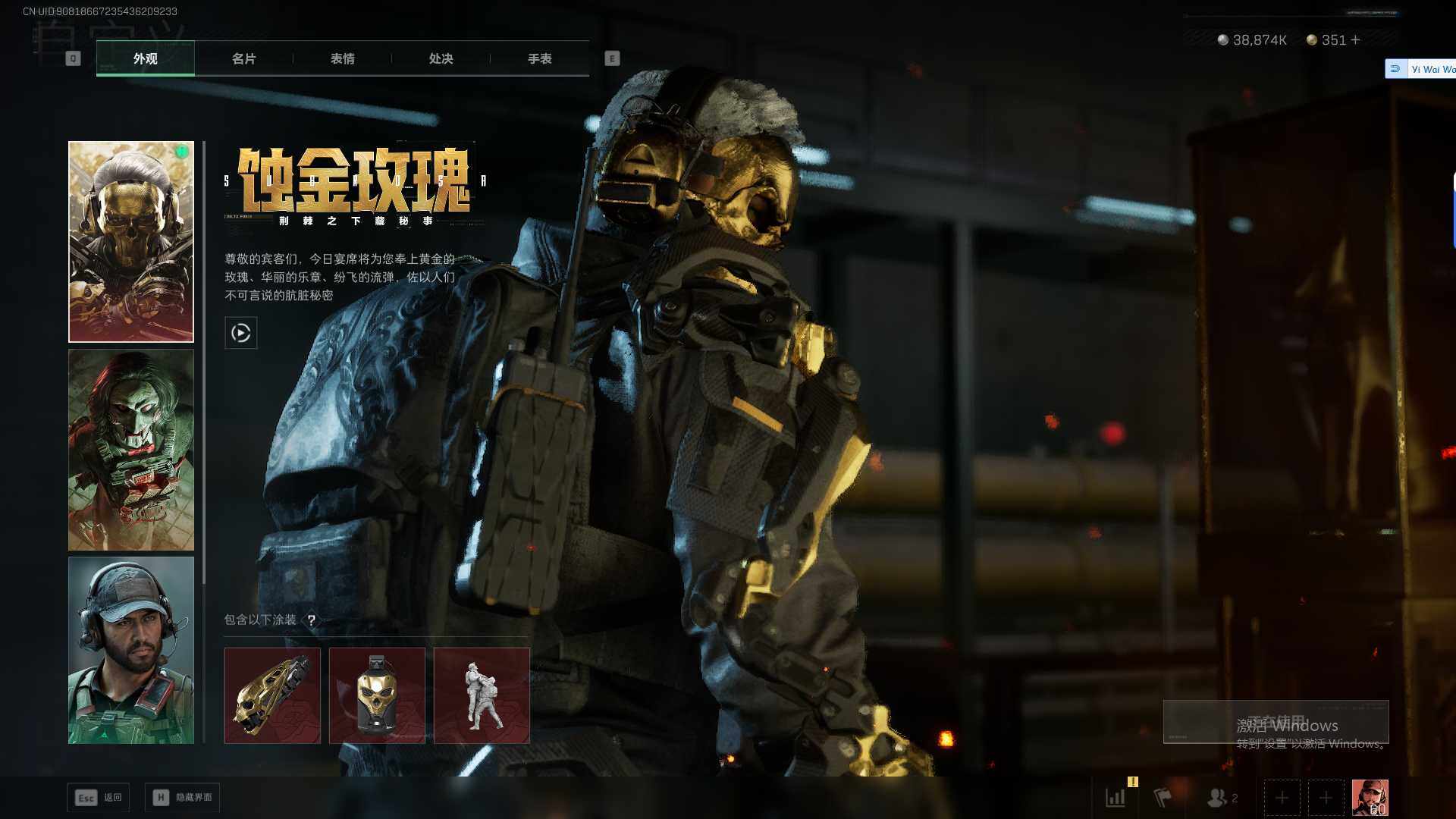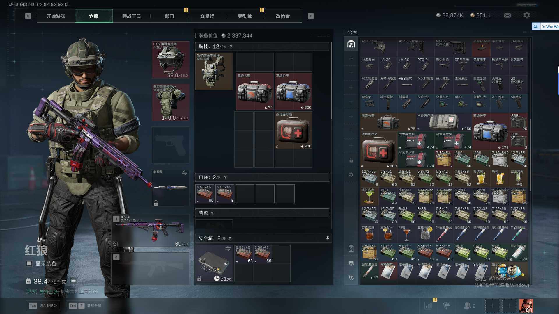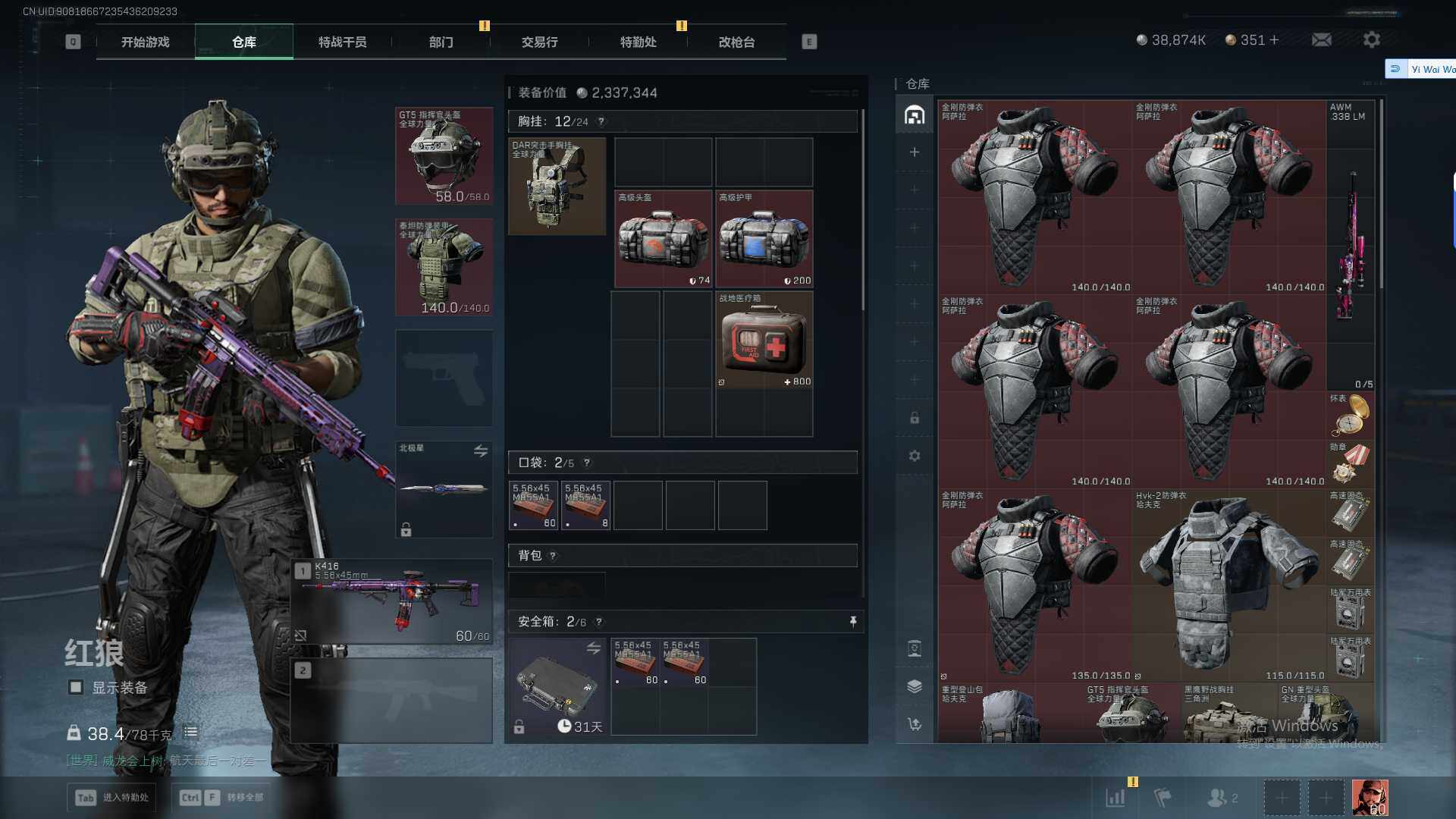 总资产(M):134M/哈夫币(K):38874K/哈夫币(K):38874K/传说枪皮数:22/全