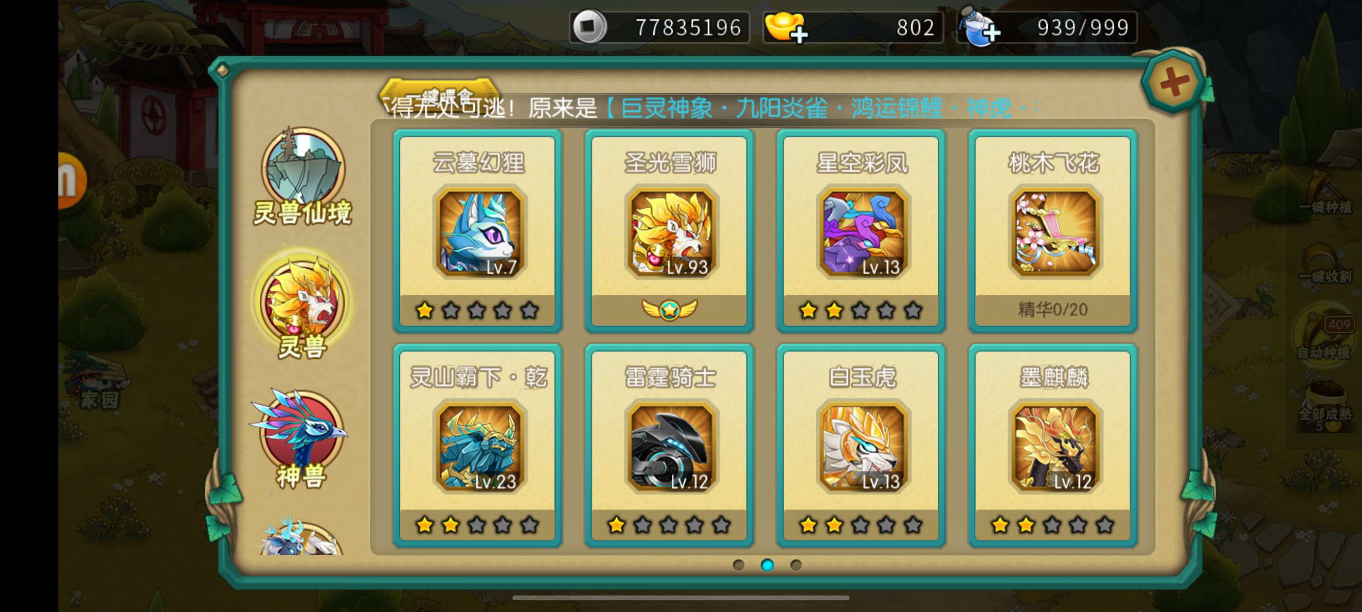 神话飞廉巨灵套,大象,鱼二阶,资源多,有双倍月卡季卡