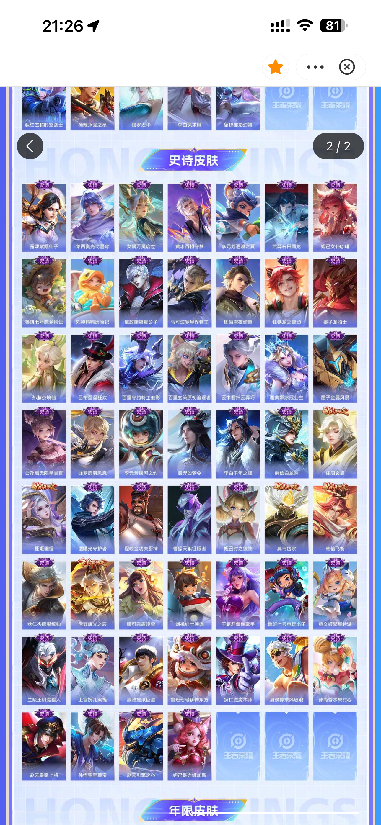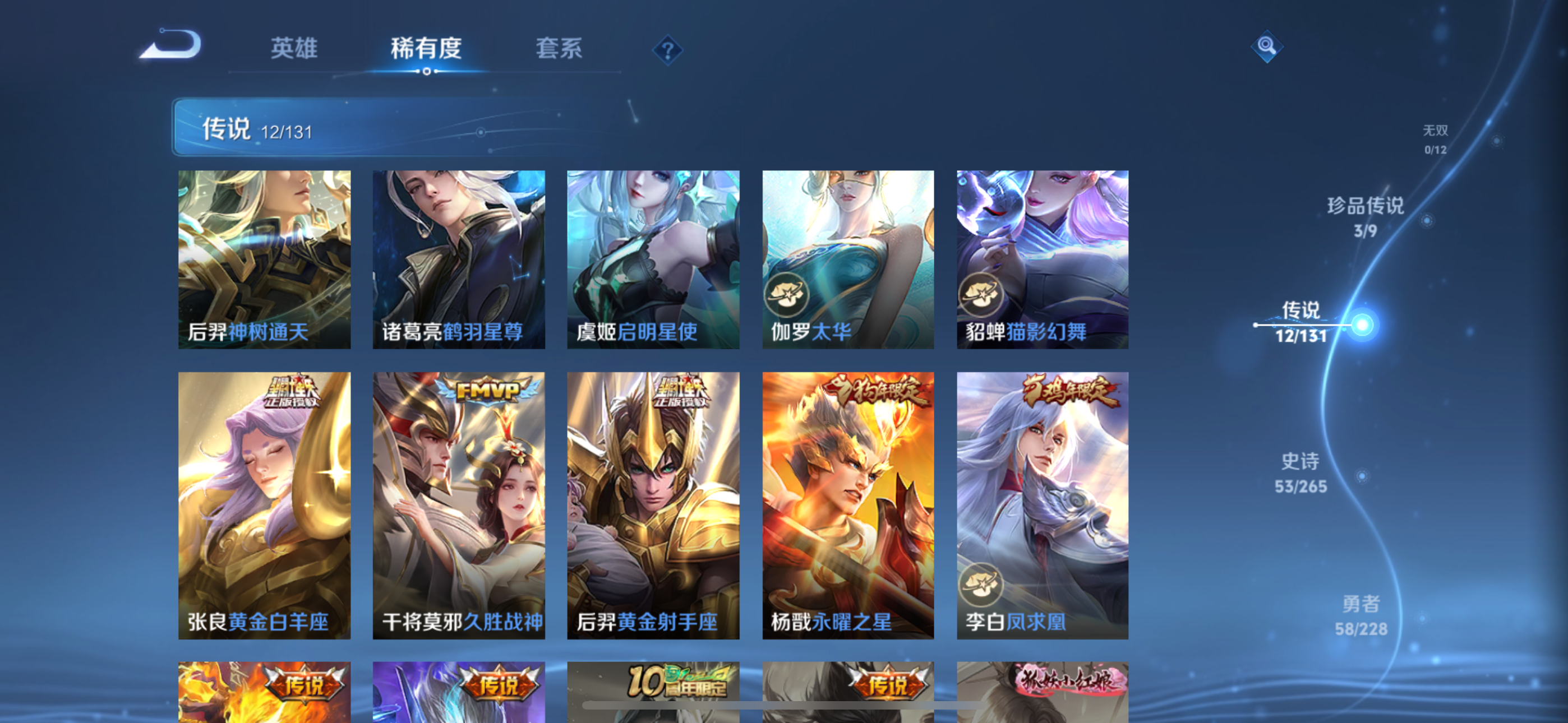 皮肤172 英雄126 无双王者 荣耀典藏3 珍品传说3 传说12 其他皮肤69-3典藏皮肤,3珍品传说