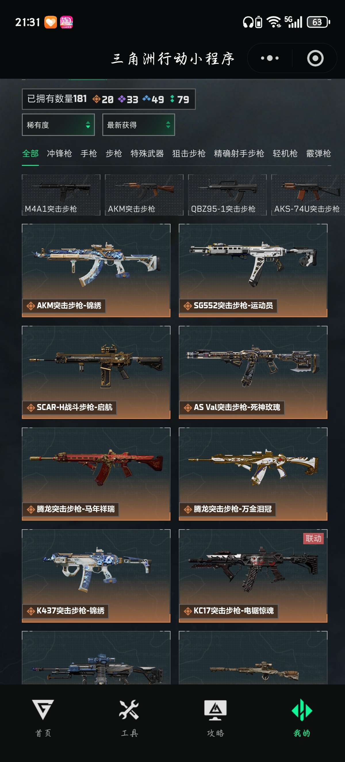 麦小雯联动皮,红狼电锯惊魂,有炫彩鸟蛋还有些紫皮没算最新的3款金枪k416腾龙