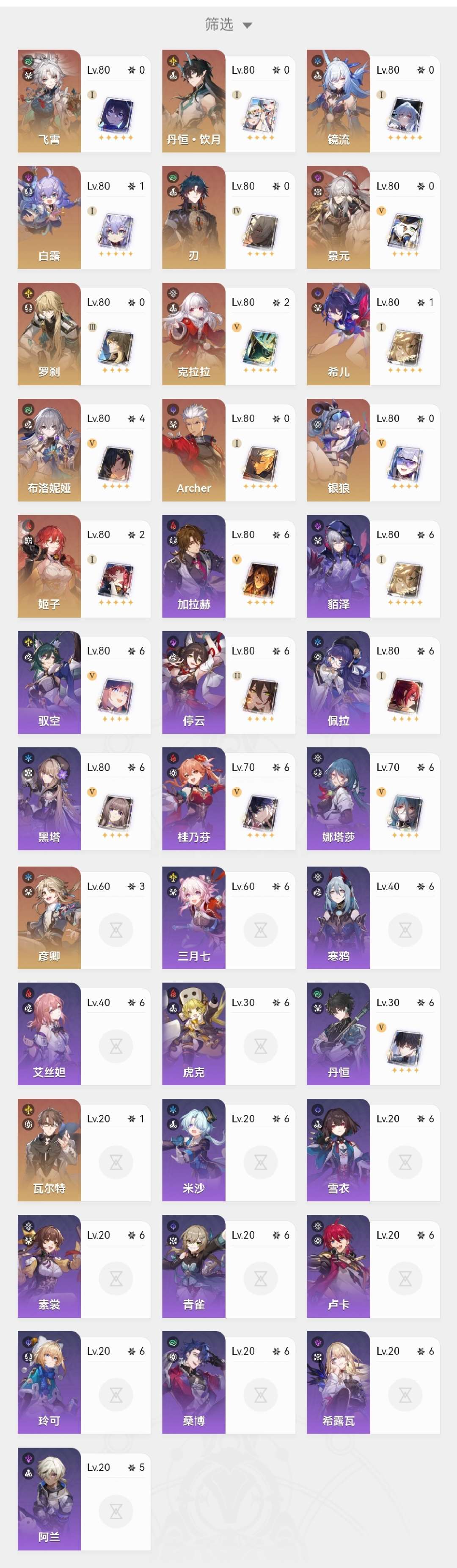 崩铁绝区零连体一起出售 遐蝶白厄黄泉镜流景元云璃红A都带有专武,阮梅希儿1命带专武,邮箱tap未绑定
