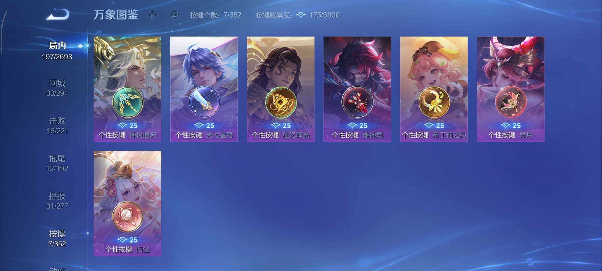 可换绑【V8精品号 兔年李信 李逍遥 祈雪灵祝 白虎志 时雨天司 凤求凰 多传说限定质量号】 幸运值269 7按键,2星传说,11王者印记,满级铭文,可二次CD15328,安卓Q-V8-231皮肤-29传说-56史诗【英雄全皮】:娜可露露全皮,橘右京全皮,李信全皮【星元皮肤】:宫本武藏幽冥之眼,孙尚香未来机甲【传说皮肤】:后羿神树通天,干将莫邪画中仙,伽罗炽翼辉光,曜