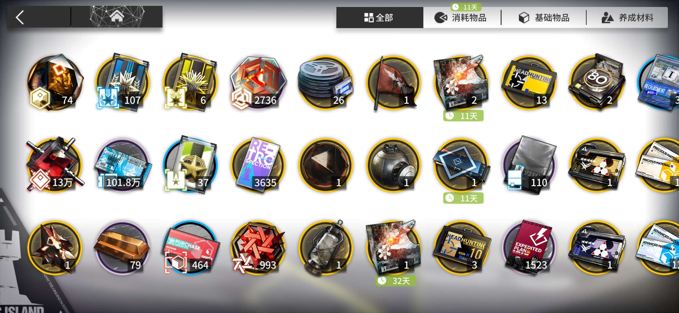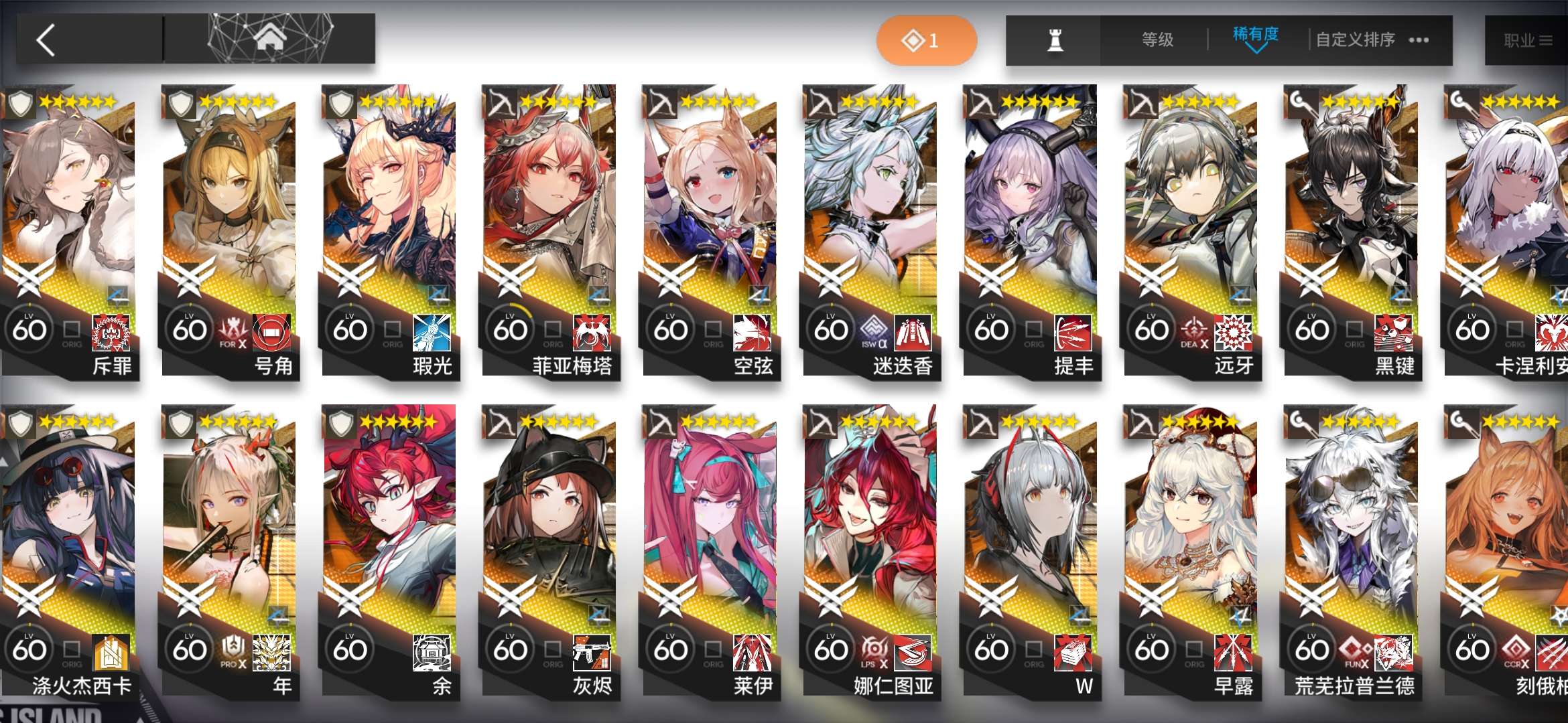 全图鉴,13万玉,74源石,259皮肤,3张十连抽+13单抽。付费名片都有买。有Mujica全套皮肤