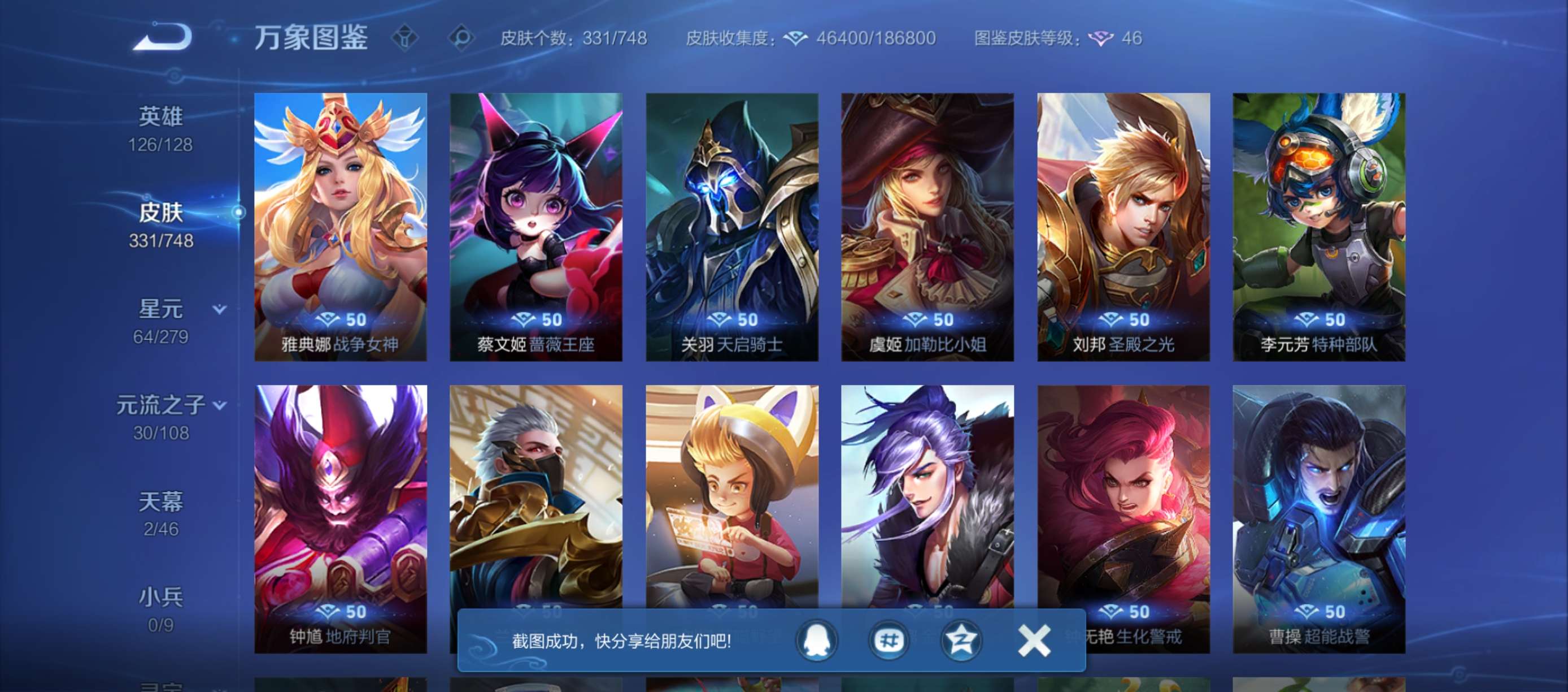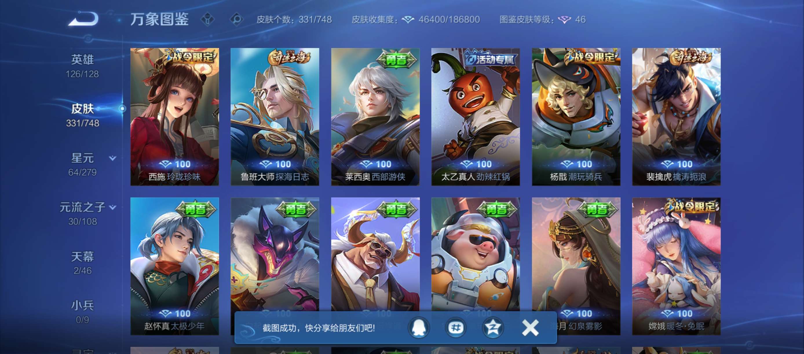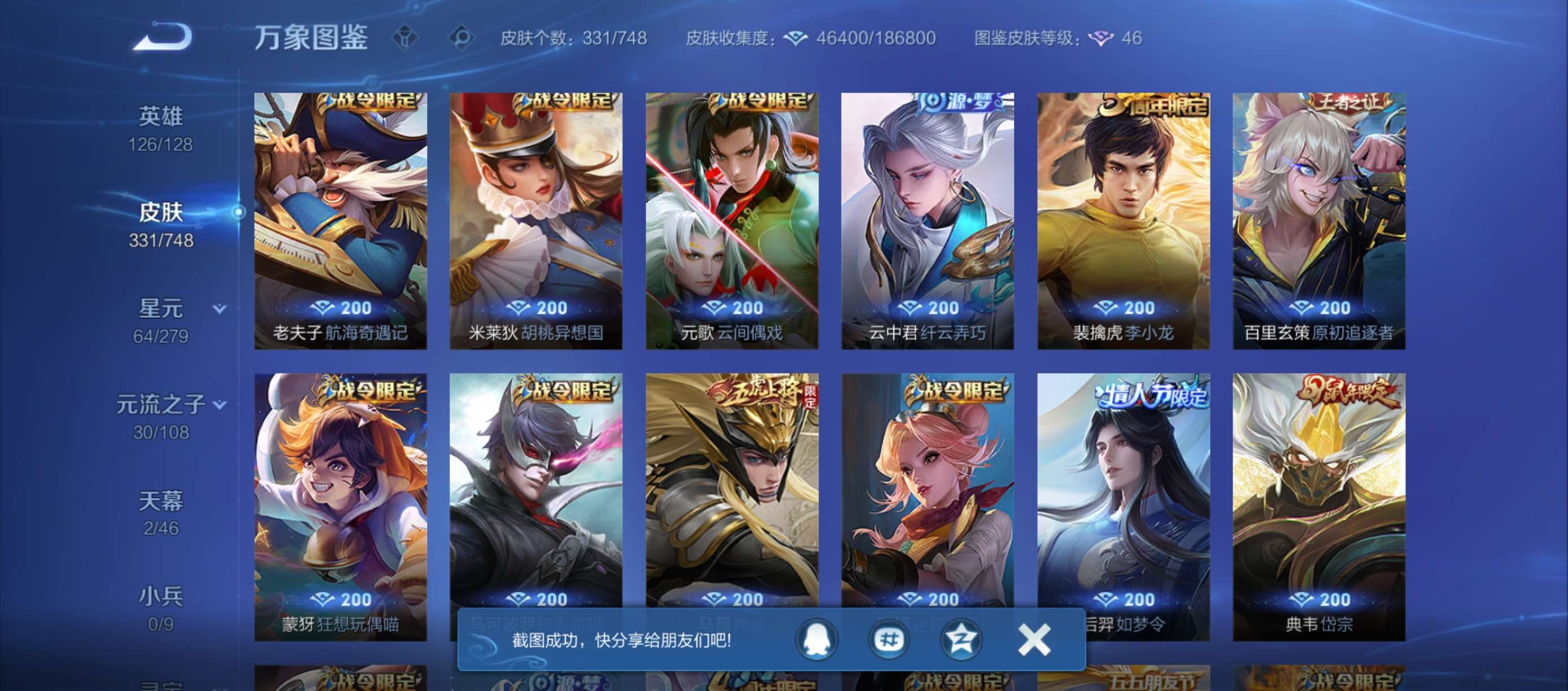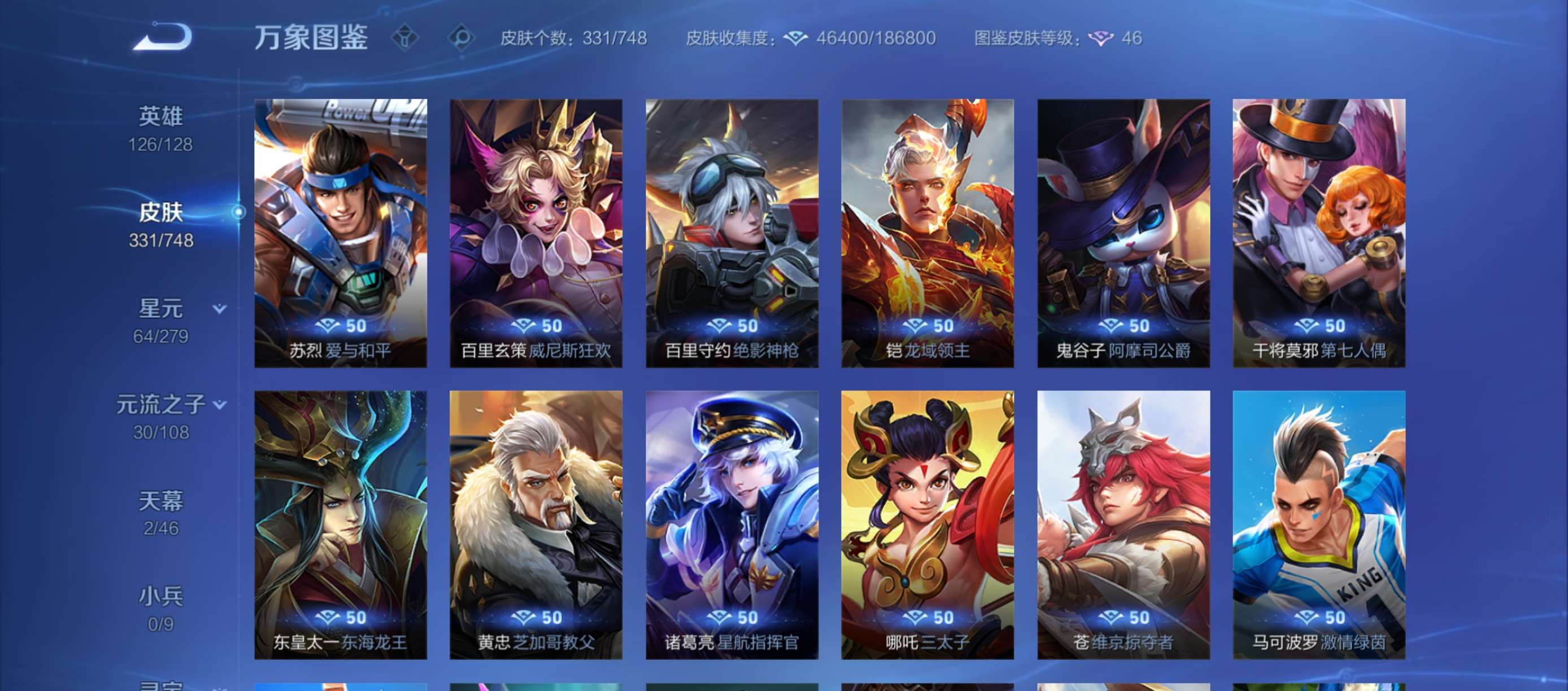 可二次,皮肤331 英雄126 1典藏 珍品传说1 传说16,喜欢的可以入手