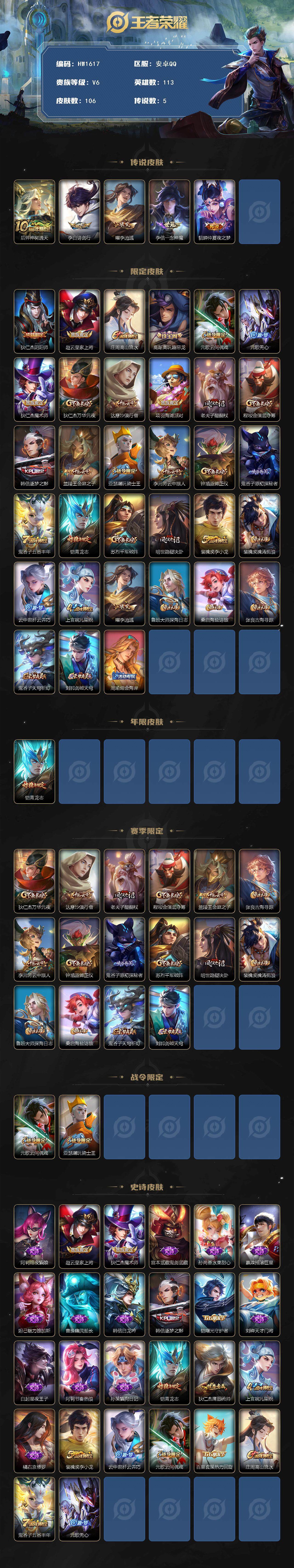 皮肤106 英雄113 尊贵铂金 传说5 其他皮肤47-连体和平梦幻火箭/李逍遥/106皮肤5传说26史诗/神树通天/诗剑行/一念神魔