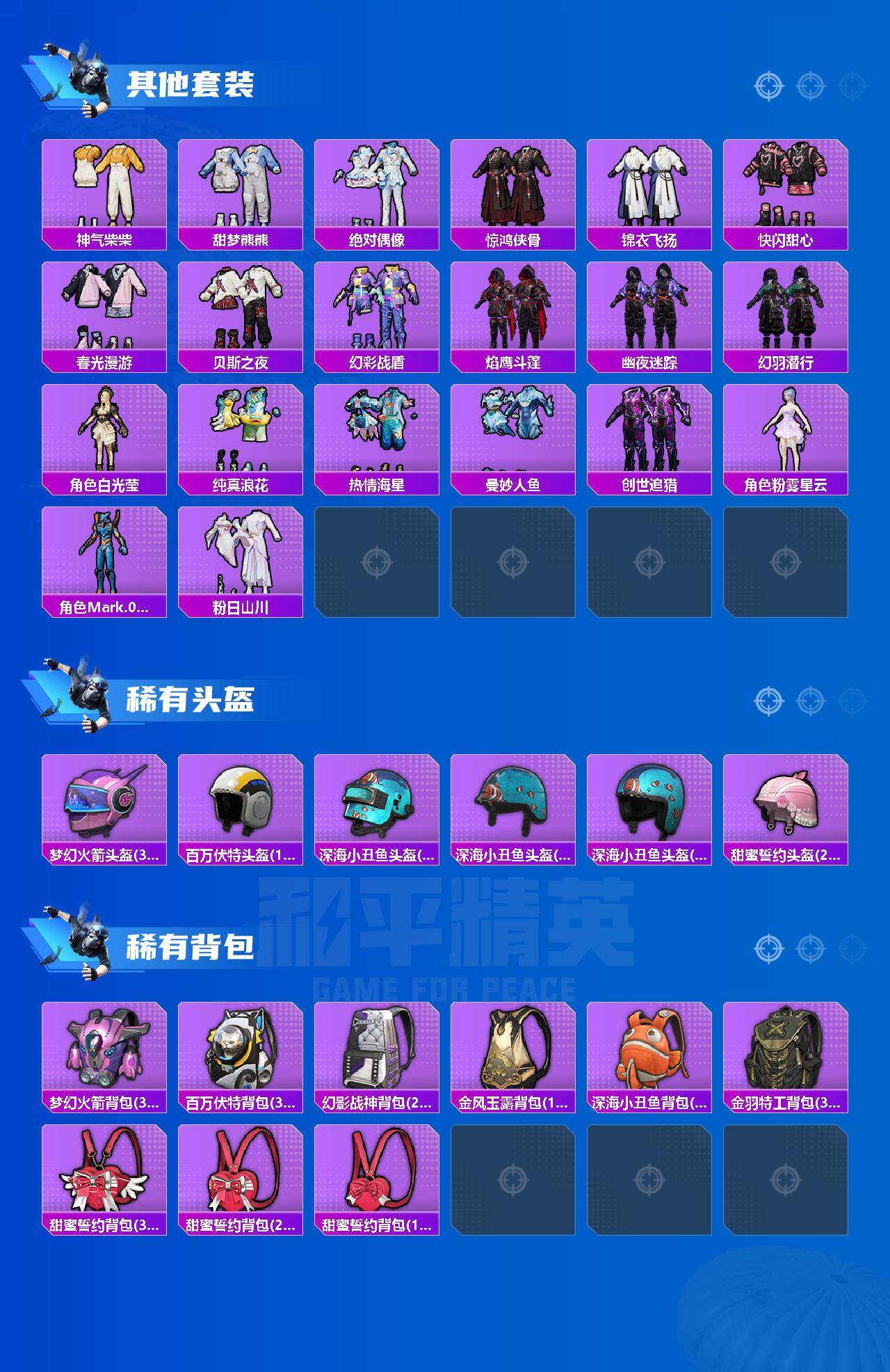 【热门品类】:粉装-音爆索尼克,绝对防御上衣,套装-浪漫天命,套装-都市猎人,套装-派对舞王,套装-深海小丑鱼,角色-军刀雅典娜,套装-动感兔斯基人偶服,套装-龟仙人,套装-暗影哥特,套装-粉红小猪,角色-Mark.06,熔岩游骑兵连帽夹克