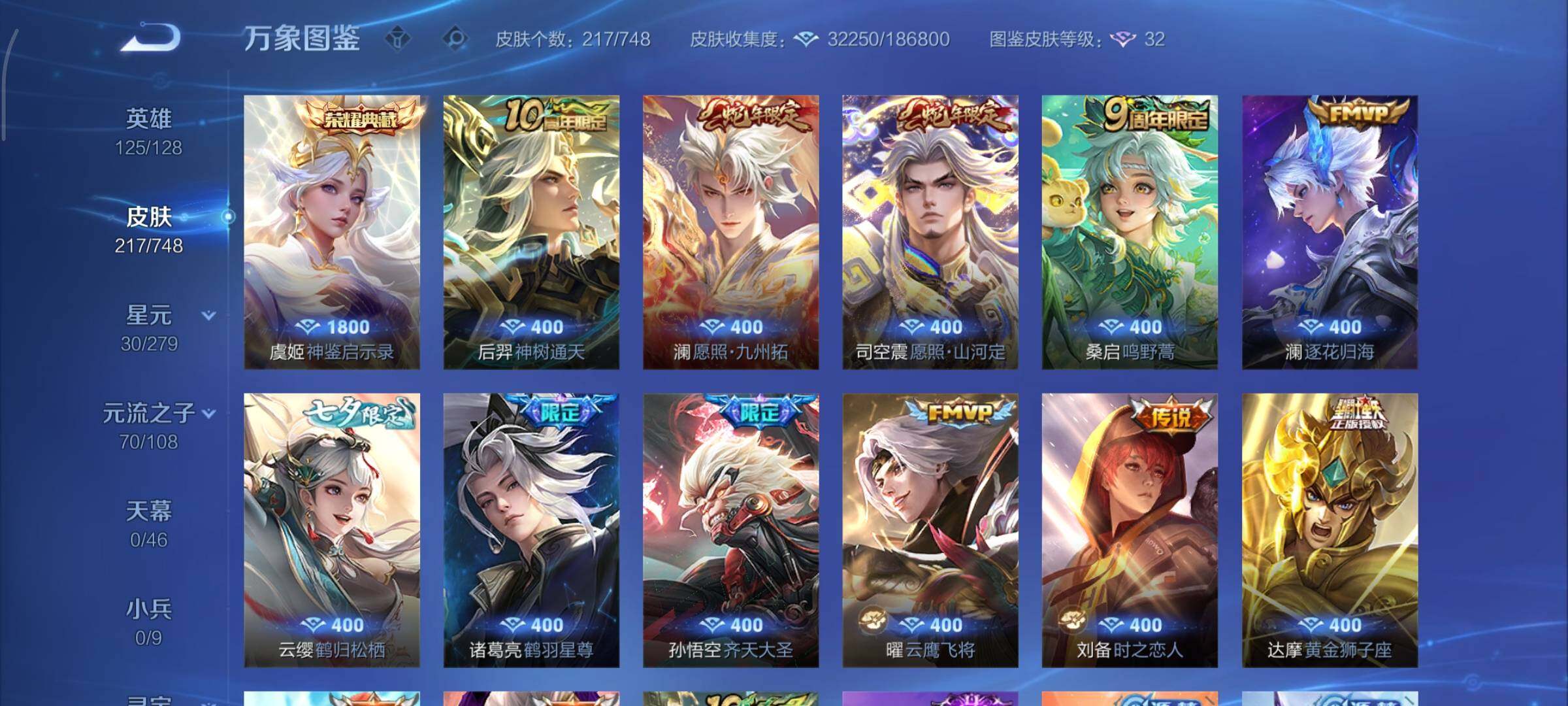 可换绑【性价比优质号 虞姬典藏 蛇年限定 七夕云缨 神威 多传说限定质量号】 12按键,1星传说,6王者印记,五级铭文150,可二次CD15639,安卓Q-V7-217皮肤-1典藏皮肤-13传说-63史诗【英雄全皮】:孙权全皮,司空震全皮【荣耀典藏】:虞姬神鉴启示录【星元皮肤】:宫本武藏幽冥之眼【传说皮肤】:后羿神树通天,司空震愿照山河定,澜愿照九州拓,桑启鸣野蒿