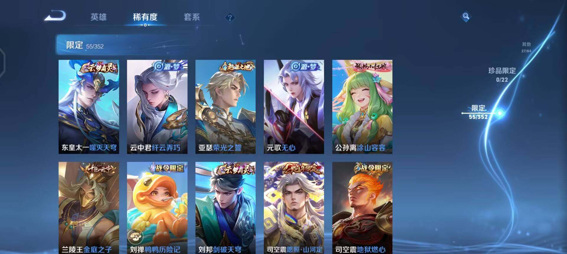 【传说皮肤】:司空震愿照山河定,狄仁杰神器狴犴令,裴擒虎寅虎赤拳,虞姬云霓雀翎,孙尚香末日机甲,宫本武藏地狱之