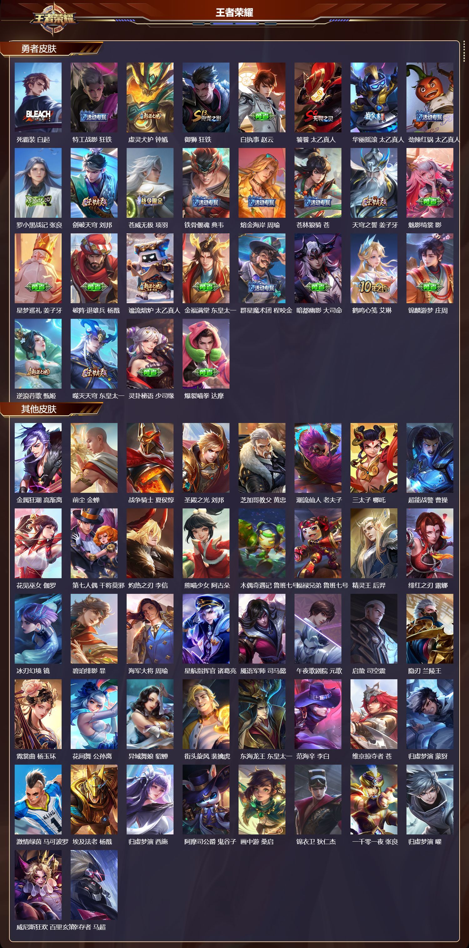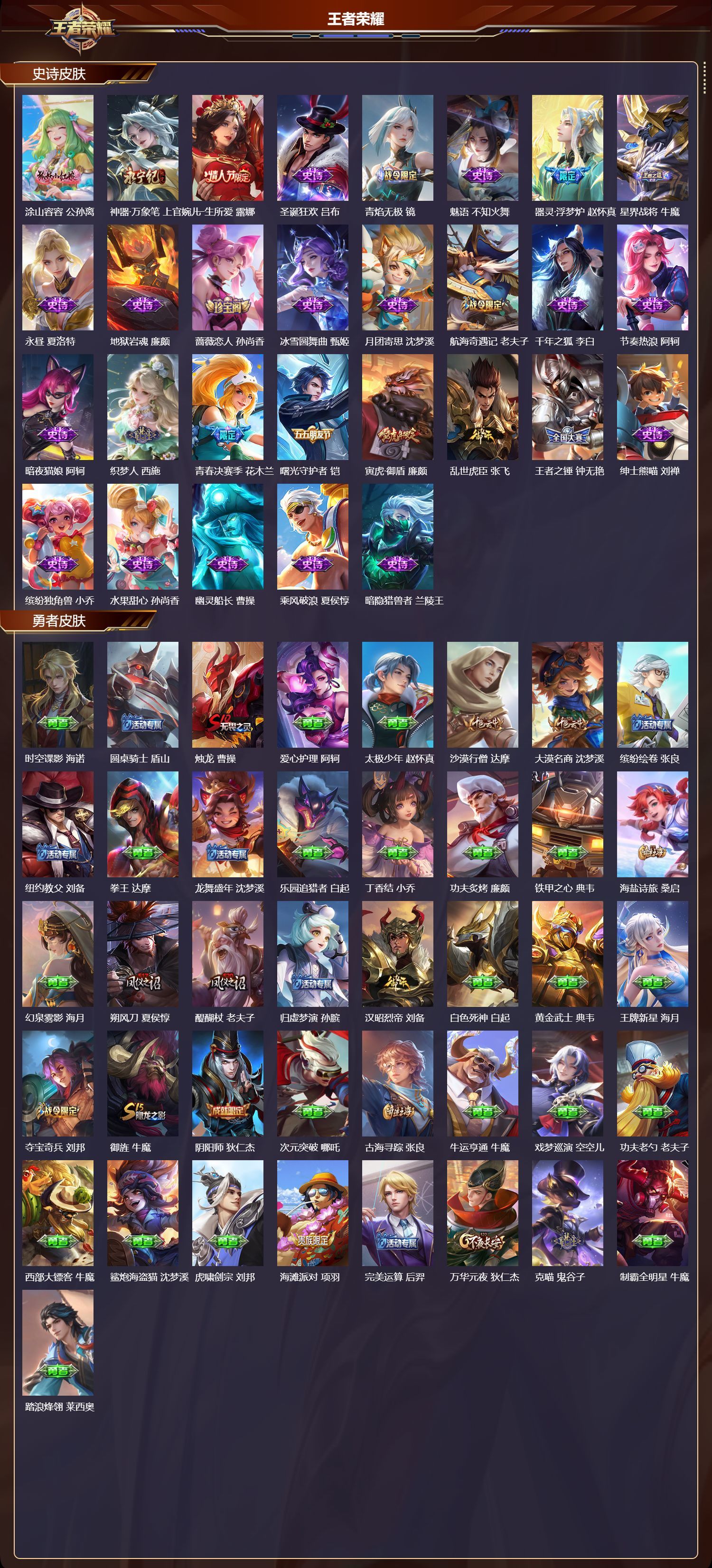 安卓QQ/荣耀王者/297皮肤/124英雄/2典藏/0珍品无双/0无双/1珍品传说/15传说/81史